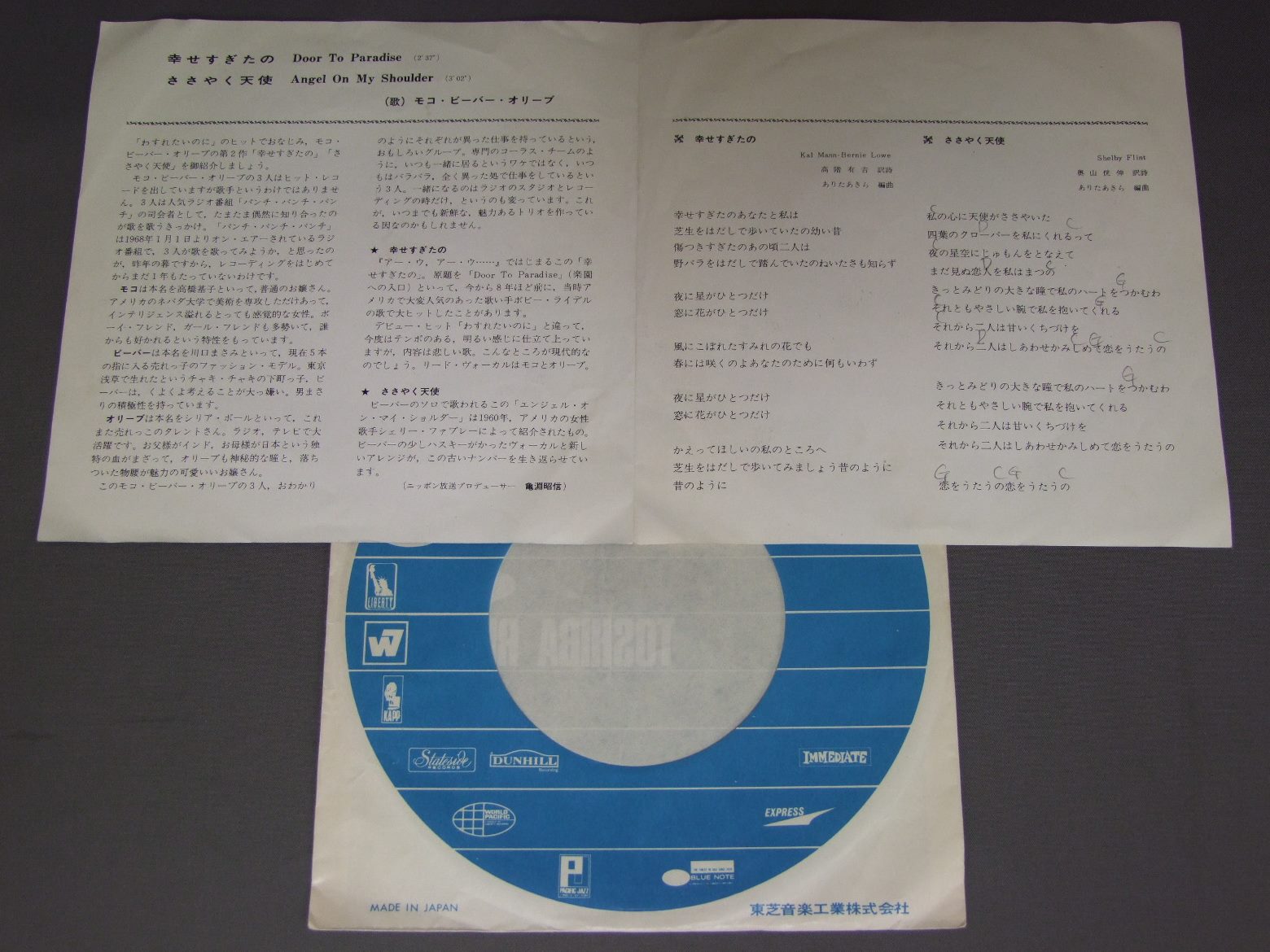 MOKO.BEAVER.OLIVEモコ・ビーバー・オリーブ/DOOR TO PARADISE幸せすぎたの EP1170 製造国:日本盤 / Media:7inch外観:EX盤の状態:EX+ 価格(税込):¥2,750(売約済) 送料 7inch:定形外郵便 360円~LP:定形外郵便 660円~送料は、注文の最終画面で確認頂けます。 > > MOKO.BEAVER.OLIVE/DOOR TO PARADISE 外観 (EX)特記事項:多少ヨレ有り。見開きに書き込み有り。外観EXの共通説明:ダメージが限定的。中古品としては保存状態がよい方。シミ、ヨゴレ、スレ 少し~軽度。 盤の状態 (EX+)特記事項:極薄いスリキズ・スレ少し。一見してきれいな状態です。盤EX+の共通説明:盤面の極薄いスリキズ、スレ少し程度 音に出そうなものは無いように見える(極軽微なソフトティック音は除く)。 Tweet それぞれの画像をクリックすると、大きい写真が見られます こちらの商品もお勧めです 990円 MASAMICHI SUGI杉真理 / STARGAZERスターゲイザー 1,650円 MASABUMI KUROSAKA黒坂正文 / MO DO MESSAGE (AUTOGRAPHED)茂道 メッセージ (サイン付) 1,210円 VARIOUS HANDICAPPED SINGERSたんぽぽの会 / INTERNATIONAL MUSIC FESTIVAL WATABOSHI小さな一歩 世界わたぼうし音楽祭 770円 CHIKA UEDA上田知華 / MISS HEARTミス・ハート 1,210円 SHOGO HAMADA浜田省吾 / SAND CASTLESAND CASTLE 1,650円 TAKAYUKI INOUE井上堯之 / WATER BAND WAGON 662円 KATSUO OHNO大野克夫 / WINDWARD HILLウィンドワード・ヒル 880円 MASA TAKAGI高木麻早 / 1st ALBUM高木麻早