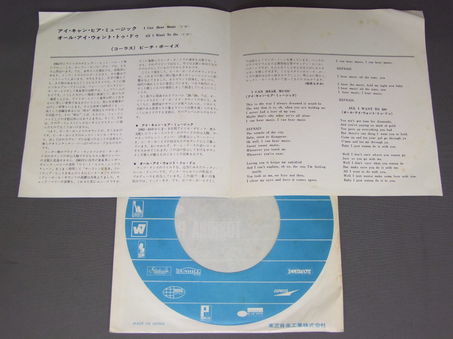 BEACH BOYSビーチ・ボーイズ/I CAN HEAR MUSICアイ・キャン・ヒア・ミュージック CR2239 製造国:日本盤 / Media:7inch外観:EX盤の状態:EX+ 価格(税込):¥1,100(売約済) 送料 7inch:定形外郵便 360円~LP:定形外郵便 660円~送料は、注文の最終画面で確認頂けます。 > > BEACH BOYS/I CAN HEAR MUSIC 外観 (EX)特記事項:見開きや裏ジャケにシミ有。外観EXの共通説明:ダメージが限定的。中古品としては保存状態がよい方。シミ、ヨゴレ、スレ 少し~軽度。 盤の状態 (EX+)特記事項:極薄いスリキズ・スレ少し。一見してきれいな状態です。盤EX+の共通説明:盤面の極薄いスリキズ、スレ少し程度 音に出そうなものは無いように見える(極軽微なソフトティック音は除く)。 Tweet それぞれの画像をクリックすると、大きい写真が見られます こちらの商品もお勧めです 1,210円 BEACH BOYSビーチ・ボーイズ / BEACH BOYSビーチ・ボーイズ