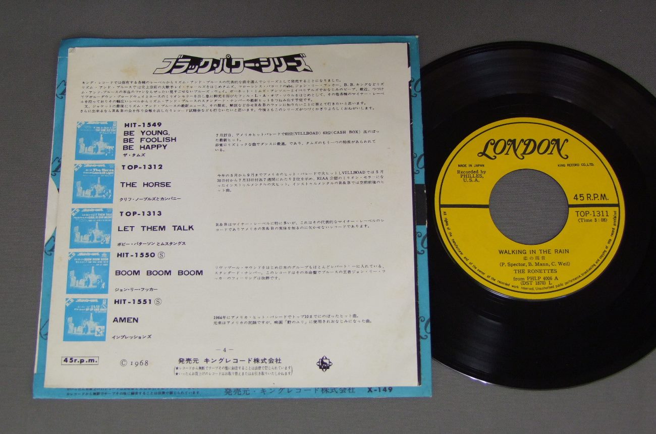 RONETTESロネッツ/BE MY BABYビー・マイ・ベイビー TOP1311 製造国:日本盤 / Media:7inch外観:EX-盤の状態:EX+ 価格(税込):¥880(売約済) 送料 7inch:定形外郵便 360円~LP:定形外郵便 660円~送料は、注文の最終画面で確認頂けます。 > > RONETTES/BE MY BABY 外観 (EX-)特記事項:裏ジャケと見開きにシミ有。外観EX-の共通説明:ダメージ軽度~多少。 中古品としては普通の状態。シミ、ヨゴレ、スレなど軽く~多少。 盤の状態 (EX+)特記事項:極薄いスリキズ・スレ少し。一見してきれいな状態です。盤EX+の共通説明:盤面の極薄いスリキズ、スレ少し程度 音に出そうなものは無いように見える(極軽微なソフトティック音は除く)。 Tweet それぞれの画像をクリックすると、大きい写真が見られます こちらの商品もお勧めです 770円 KOOL & THE GANGクール・アンド・ギャング / LADIES` NIGHTレディーズ・ナイト 880円 DIANA ROSSダイアナ・ロス / LIVE AT CAESARS PALACEライブ・アット・シーザース・パレス 1,320円 DIANA ROSSダイアナ・ロス / ROSSロス 1,210円 EARTH. WIND & FIREアース・ウインド & ファイアー / RAISE!天空の女神 440円 PEABO BRYSONピーボ・ブライソン / STRAIGHT FROM THE HEARTストレイト・フロム・ザ・ハート 1,210円 COMMODORESコモドアーズ / NIGHTSHIFTナイトシフト 990円 MAURICE WHITEモーリス・ホワイト / MAURICE WHITEスタンド・バイ・ミー 1,210円 EARTH. WIND & FIREアース・ウインド&ファイアー / ELECTRIC UNIVERSEエレクトリック・ユニヴァース