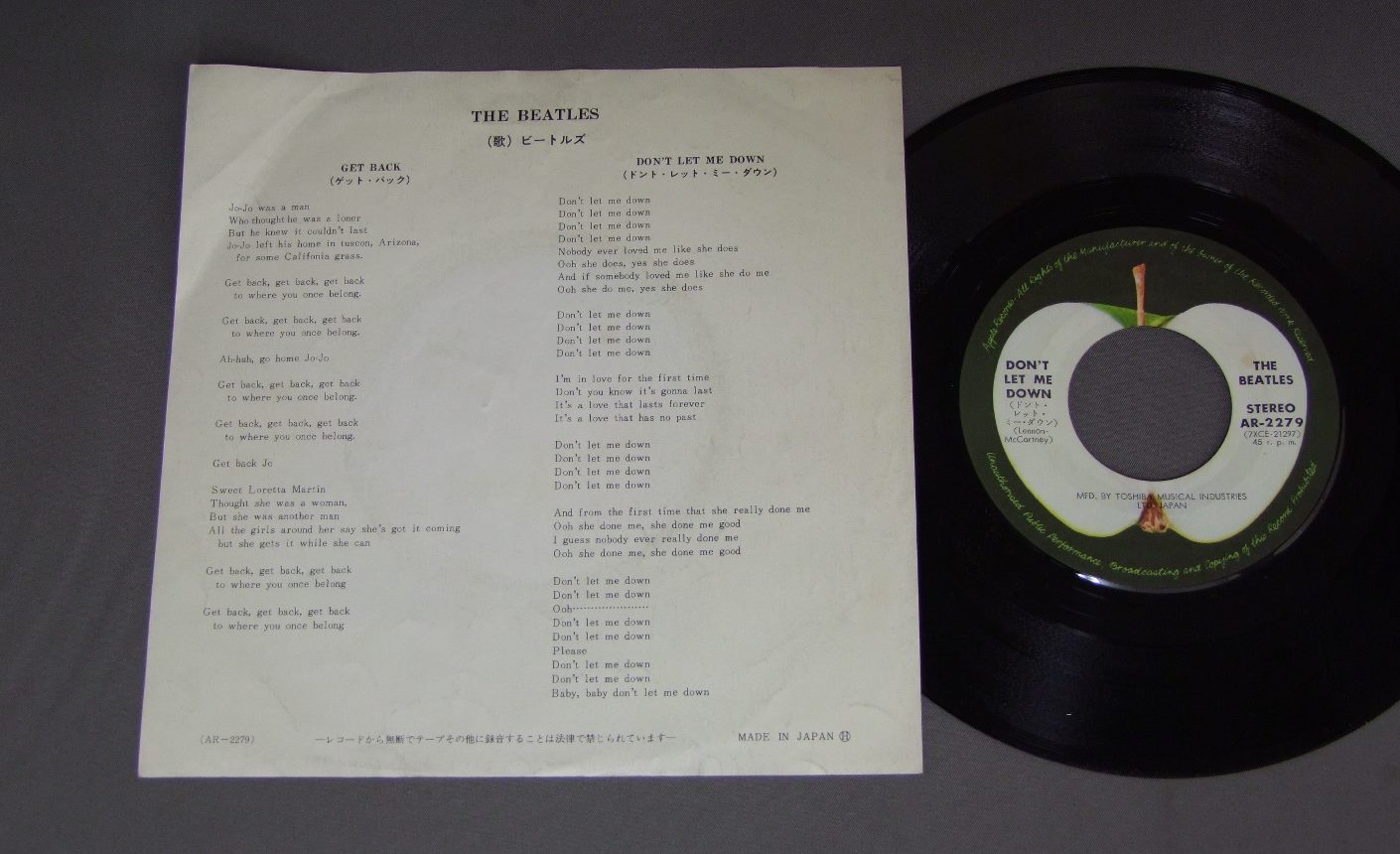 BEATLESビートルズ/GET BACKゲット・バック AR2279 製造国:日本盤 / Media:7inch外観:EX-盤の状態:EX+ 価格(税込):¥990(売約済) 送料 7inch:定形外郵便 360円~LP:定形外郵便 660円~送料は、注文の最終画面で確認頂けます。 > > BEATLES/GET BACK 外観 (EX-)特記事項:特記なし。外観EX-の共通説明:ダメージ軽度~多少。 中古品としては普通の状態。シミ、ヨゴレ、スレなど軽く~多少。 盤の状態 (EX+)特記事項:極薄いスリキズ・スレ少し。一見してきれいな状態です。盤EX+の共通説明:盤面の極薄いスリキズ、スレ少し程度 音に出そうなものは無いように見える(極軽微なソフトティック音は除く)。 Tweet それぞれの画像をクリックすると、大きい写真が見られます こちらの商品もお勧めです 990円 WINGS / VENUS AND MARS 880円 PAUL McCARTNEYポール・マッカートニー / TUG OF WARタグ・オブ・ウォー 1,210円 WINGSウイングス / GREATEST HITSグレイテスト・ヒット 1,980円 GEORGE HARRISONジョージ・ハリスン / LIVING IN THE MATERIAL WORLDリヴィング・イン・ザ・マテリアル・ワールド 1,650円 GEORGE HARRISONジョージ・ハリスン / DARK HORSEダーク・ホース 1,650円 GEORGE HARRISONジョージ・ハリソン / EXTRA TEXTUREジョージ・ハリソン帝国 770円 WINGSウイングス / AT THE SPEED OF SOUNDスピード・オブ・サウンド 1,210円 WINGSウィングス / WINGS OVER AMERICAウィングスU.S.A ライヴ