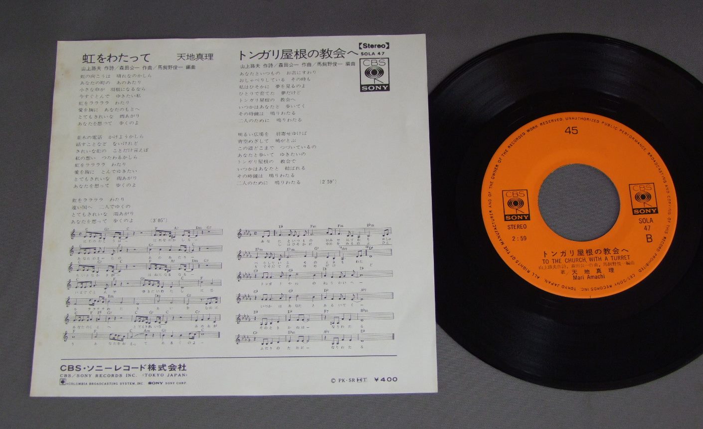 MARI AMACHI天地真理/BRIDGE OF A RAINBOW虹をわたって SOLA47 製造国:日本盤 / Media:7inch外観:EX-盤の状態:EX+ 価格(税込):¥330 送料 7inch:定形外郵便 360円~LP:定形外郵便 660円~送料は、注文の最終画面で確認頂けます。 > > MARI AMACHI/BRIDGE OF A RAINBOW 外観 (EX-)特記事項:シミ軽やや有り。外観EX-の共通説明:ダメージ軽度~多少。 中古品としては普通の状態。シミ、ヨゴレ、スレなど軽く~多少。 盤の状態 (EX+)特記事項:極薄いスリキズ・スレ少し。一見してきれいな状態です。盤EX+の共通説明:盤面の極薄いスリキズ、スレ少し程度 音に出そうなものは無いように見える(極軽微なソフトティック音は除く)。 Tweet それぞれの画像をクリックすると、大きい写真が見られます こちらの商品もお勧めです 880円 NUMBER ONE BANDナンバーワン・バンド / TOKYO ATARI東京あたり 1,210円 ALFIEアルフィー / GREENHORN ( VICTOR YEARS 1974-76 ) + OUTER COVERGREENHORN ( VICTOR YEARS 1974-76 ) + オリジナル外袋 1,210円 NUMBER ONE BANDザ・ナンバーワン・バンド / TOKYO ATARI東京あたり 770円 KEIKO MARUYAMA丸山圭子 / HARUSHIGURE春しぐれ 1,320円 OKAWARI SISTERSおかわりシスターズ / L.A.S.Tラ・ス・ト カレンダー付 1,320円 RUMIKO KOYANAGI小柳ルミ子 / HARU NO OTOZURE春のおとずれ 660円 TOMOKAZU MIURA三浦友和 / AND FRIENDS文化放送 三浦友和と仲間たち 赤頭巾ちゃん秘密だよ 1,650円 HAJIME TACHIBANA立花はじめ / H・マイナー 帯付