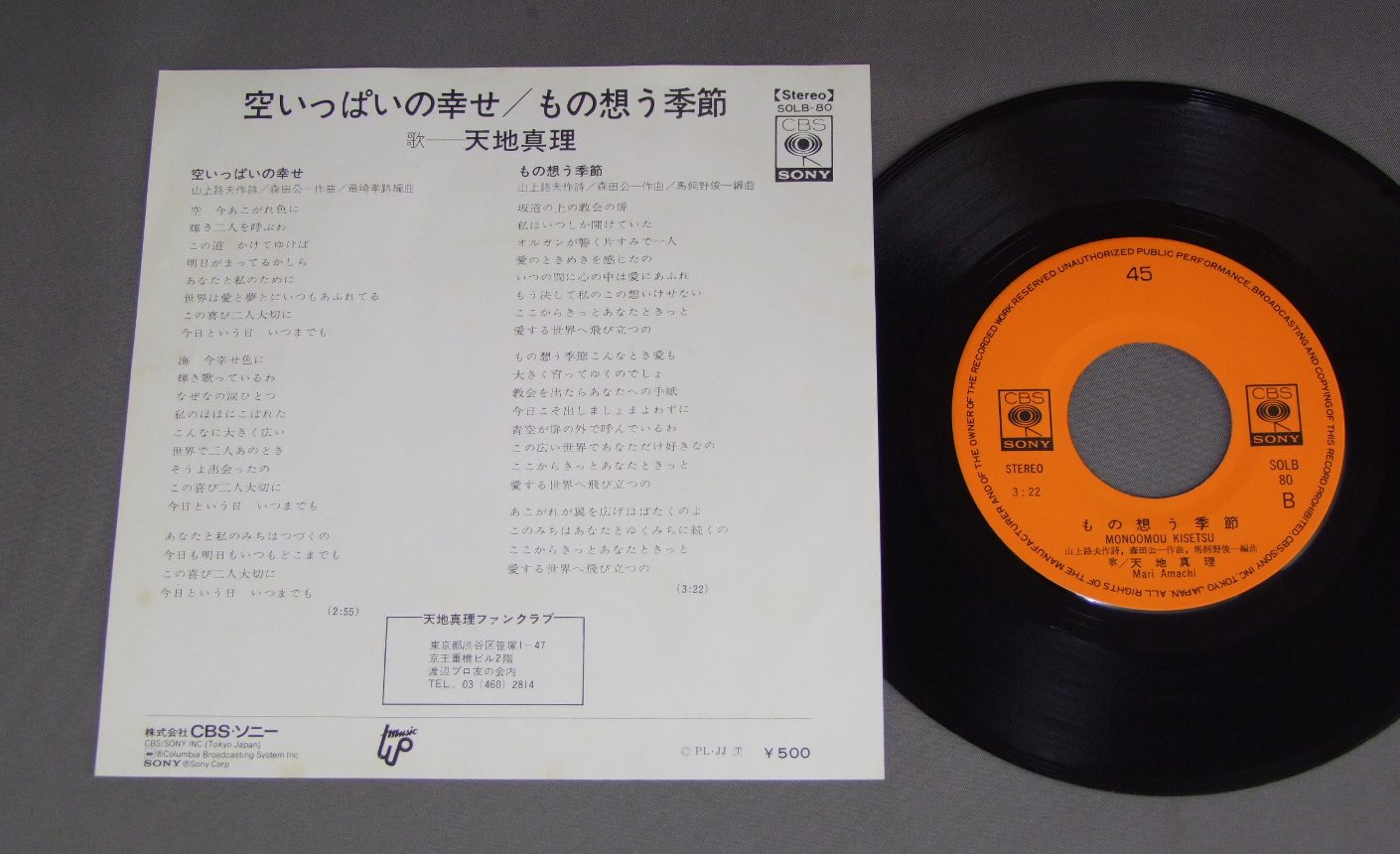 MARI AMACHI天地真理/SORA IPPAI NO SHIAWASE空いっぱいの幸せ SOLB80 製造国:日本盤 / Media:7inch外観:EX-盤の状態:EX+ 価格(税込):¥330 送料 7inch:定形外郵便 360円~LP:定形外郵便 660円~送料は、注文の最終画面で確認頂けます。 > > MARI AMACHI/SORA IPPAI NO SHIAWASE 外観 (EX-)特記事項:シミ軽少し。外観EX-の共通説明:ダメージ軽度~多少。 中古品としては普通の状態。シミ、ヨゴレ、スレなど軽く~多少。 盤の状態 (EX+)特記事項:極薄いスリキズ・スレ少し。一見してきれいな状態です。盤EX+の共通説明:盤面の極薄いスリキズ、スレ少し程度 音に出そうなものは無いように見える(極軽微なソフトティック音は除く)。 Tweet それぞれの画像をクリックすると、大きい写真が見られます こちらの商品もお勧めです 1,210円 KEIKO MARUYAMA丸岡圭子 / 73-74花紋様-丸岡圭子`73-`74 770円 MASAMICHI SUGI杉真理 / MISTONE 770円 EIGO KAWASHIMA河島英五 / SHINBOU信望 1,320円 SHIGERU MATSUZAKI松崎しげる / WATASHI NO UTA ORETACHI NO ASA私の歌 俺たちの朝 770円 MAYO SHOHNO庄野真代 / LAST SHOWラスト・ショー 770円 EMU絵夢 / 2nd ALBUMII 1,980円 SALON MUSICサロン・ミュージック / MY GIRL FRIDAY 1,430円 ZIG ZAG / FLAMINGO