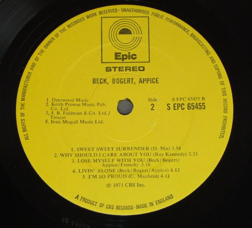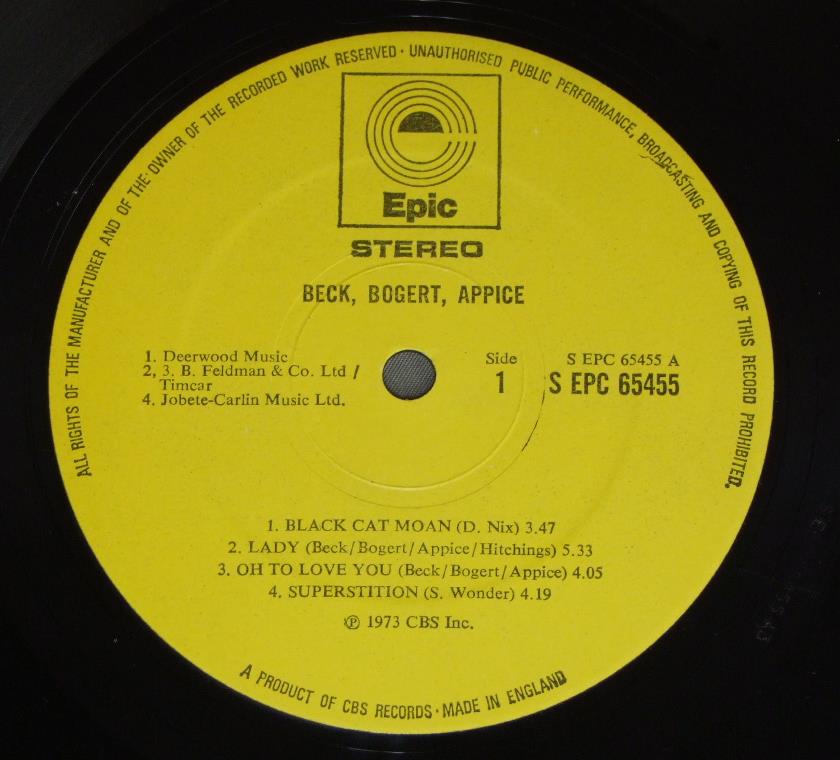 JEFF BECK/BECK BOGERT APPICE EPC65455 製造国:英国盤 / Media:LPMatrix:A3 | B3外観:EX+盤の状態:EX 価格(税込):¥8,250(売約済) 送料 7inch:定形外郵便 360円~LP:定形外郵便 660円~送料は、注文の最終画面で確認頂けます。 > > JEFF BECK/BECK BOGERT APPICE 外観 (EX+)特記事項:ジャケ表面は全体的にスレやスリキズ、よごれ等の少ないきれいな状態。外観EX+の共通説明:中古としては美品、一見してきれいでダメージが軽微。シミ、ヨゴレ、スレ有っても僅か~少し。 盤の状態 (EX)特記事項:薄いスリキズ・スレ少しある程度。音に出そうなものもなく一見してきれいな状態です。曲間など、静かなところを中心に聴いて見ましたが、チリノイズ少ないきれいな再生具合でした。 盤EXの共通説明:盤面のスリキズが薄いものが少し~軽度 音に出そうなものは無いように見える(軽微なソフトティック音は除く)。 Tweet それぞれの画像をクリックすると、大きい写真が見られます こちらの商品もお勧めです 6,050円 JEFF BECK TIM BOGERTY CARMINE APPICE / BECK BOGERT APPICE