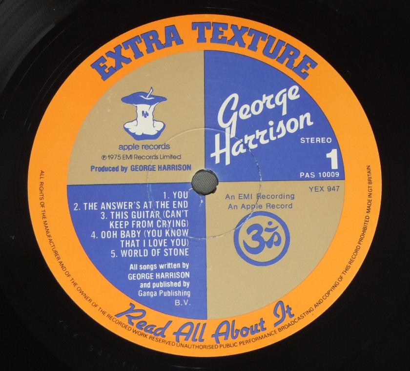 GEORGE HARRISON/EXTRA TEXTURE PAS10009 製造国:英国盤 / Media:LPMatrix:1U | 1U外観:EX盤の状態:EX 価格(税込):¥6,600(売約済) 送料 7inch:定形外郵便 360円~LP:定形外郵便 660円~送料は、注文の最終画面で確認頂けます。 > > GEORGE HARRISON/EXTRA TEXTURE 外観 (EX)特記事項:多少薄めのスレは上下である感じですが、ジャケ表面は全体的にスレやスリキズ、よごれ等は薄い感じ。 オリジナルインナーもしっかりした状態です。抜け無。外観EXの共通説明:ダメージが限定的。中古品としては保存状態がよい方。シミ、ヨゴレ、スレ 少し~軽度。 盤の状態 (EX)特記事項:極薄いスリキズ・スレ少しある程度。プチ出そうなところは少しだけで、ほとんどが軽微なものの様子です。曲間など、静かなところを中心に聴いて見ましたが、チリプチノイズ少ないきれいな再生具合でした。盤EXの共通説明:盤面のスリキズが薄いものが少し~軽度 音に出そうなものは無いように見える(軽微なソフトティック音は除く)。 Tweet それぞれの画像をクリックすると、大きい写真が見られます こちらの商品もお勧めです 5,500円 GEORGE HARRISON / LIVING IN THE MATERIAL WORLD 5,500円 JOHN LENNON / SHAVED FISH 5,500円 BEATLES / AT THE HOLLYWOOD BOWL 4,950円 JOHN & YOKO - PLASTIC ONO BANDF / SOME TIME IN NEW YORK CITY 5,500円 GEORGE HARRISON / THIRTY THREE & 1/3