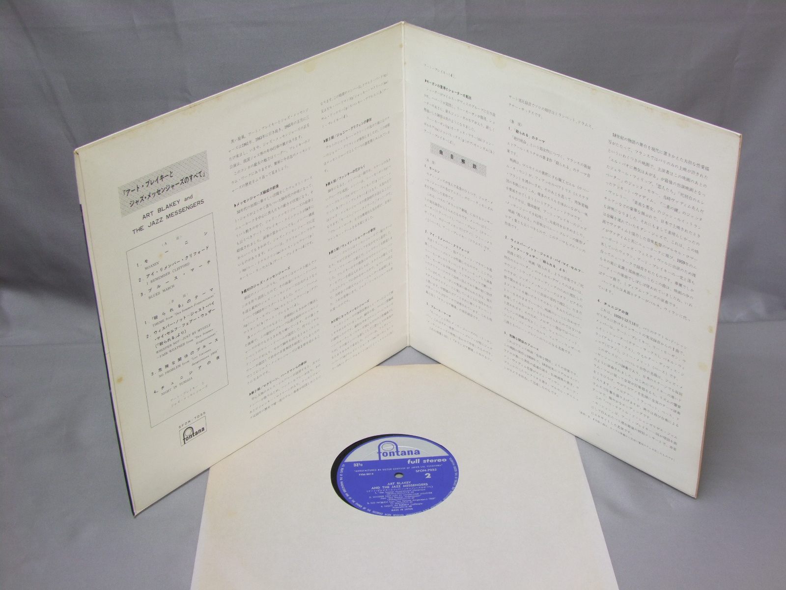 ART BLAKEY AND HIS JAZZ MESSENGERSアート・ブレイキーとジャズ・メッセンジャーズ/JAZZ MESSENGERSアート・ブレイキーとジャズ・メッセンジャーズのすべて ペラジャケ SFON7035 製造国:日本盤 / Media:LP外観:EX盤の状態:EX- 価格(税込):¥2,200(売約済) 送料 7inch:定形外郵便 360円~LP:定形外郵便 660円~送料は、注文の最終画面で確認頂けます。 > > ART BLAKEY AND HIS JAZZ MESSENGERS/JAZZ MESSENGERS 外観 (EX)特記事項:特記なし。外観EXの共通説明:ダメージが限定的。中古品としては保存状態がよい方。シミ、ヨゴレ、スレ 少し~軽度。 盤の状態 (EX-)特記事項:薄いスリキズ・細かい表面スレ多少ある感じ。殆どが軽微なものの様子です。盤EX-の共通説明:盤面のスリキズが多少有り。音に出そうなものは殆ど無いように見える~さほど気にならないぐらいの軽いプチ数カ所程度。 Tweet それぞれの画像をクリックすると、大きい写真が見られます こちらの商品もお勧めです 1,210円 WOODY HERMANウディ・ハーマン / SECOND HERDセカンド・ハード 990円 TAKEHIKO HONDA本田竹彦 / JODO浄土 1,210円 RANDY WESTON SEXTETランディー・ウエストン 六重奏団 / LITTLE NILESリトル・ナイルス - ランディー・ウエストンの芸術 440円 GARY BURTON - SONNY ROLLINS - CLARK TERRYG.バートン - S.ロリンズ - C.テリー / 3 IN JAZZスリー・イン・ジャズ 1,210円 JOHN MEHEGAN & EDDIE COSTAジョン・ミーガン&エディ・コスタ / PAIR OF PIANOSペア・オブ・ピアノ 440円 SADAO WATANABE渡辺貞夫 / MORNING ISLANDモーニング・アイランド 770円 SADAO WATANABE渡辺貞夫 / MY DEAR LIFEマイ・ディア・ライフ 660円 QUINCY JONES & BANDクインシー・ジョーンズ / I DIG DANCERSアイ・ディグ・ダンサーズ