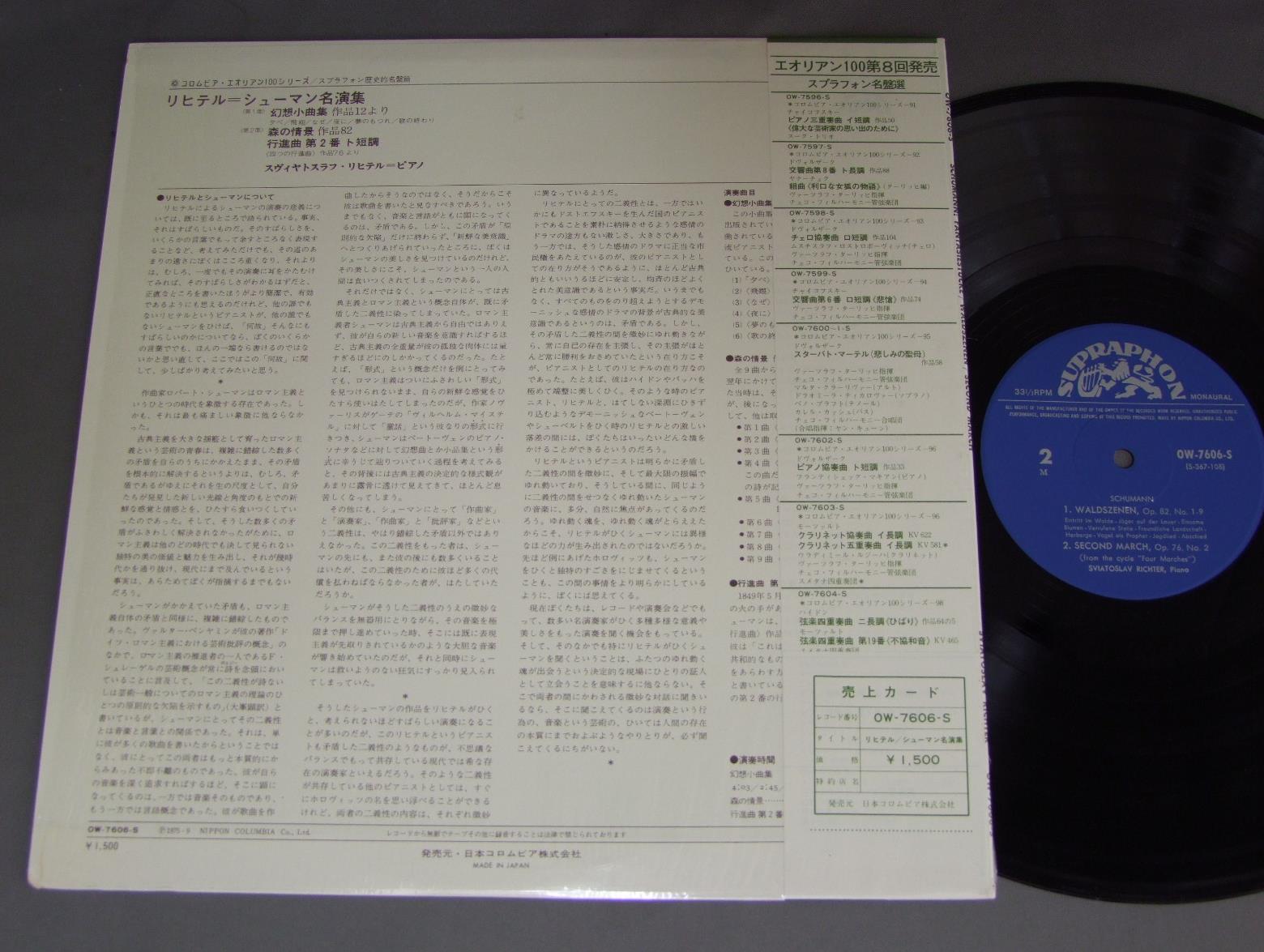 RICHTERリヒテル/SCHUMAN PIANO WORKSシューマン名演集 OW7606S 製造国:日本盤 / Media:LP外観:EX盤の状態:EX+ 価格(税込):¥1,100(売約済) 送料 7inch:定形外郵便 360円~LP:定形外郵便 660円~送料は、注文の最終画面で確認頂けます。 > > RICHTER/SCHUMAN PIANO WORKS 外観 (EX)特記事項:レコード取り出し口付近にシミが少し。外観EXの共通説明:ダメージが限定的。中古品としては保存状態がよい方。シミ、ヨゴレ、スレ 少し~軽度。 盤の状態 (EX+)特記事項:薄いスリキズ・スレ少し。一見してきれいな状態です。盤EX+の共通説明:盤面の極薄いスリキズ、スレ少し程度 音に出そうなものは無いように見える(極軽微なソフトティック音は除く)。 帯の状態 ():特記なし。 Tweet それぞれの画像をクリックすると、大きい写真が見られます こちらの商品もお勧めです 990円 RUBINSTEINルービンシュタイン / BEETHOVEN - SONATAロンドン 1976年4月 990円 HOROWITZボロヴィッツ / PLAYS CHOPINショパン・リサイタル 990円 BRENDELアレフレート・ブレンデル / BEETHOVEN-33 VARIATIONS ON A WALTZ BY DIABELLI OP120ベートーヴェン-ディアベルリ変奏曲 990円 WALTER GIESEKINGワルター・ギゼーキング / GIESEKING PLAYS DEBUSSY VOL1ドビッシー - ピアノ音楽全集 第1集 990円 KURT RAPFクルト・ラップ / MAIDEN`S PRAYER乙女の祈り 990円 HOROWITZウラディミール・ホロヴィッツ / SCHUBERT PIANO SONATA IN B-FLAT POSTH IMPROMPTU IN G-FLAT OP90 NO3シューベルト ピアノ・ソナタ 770円 MIGUEL ANGEL ESTRELLAミゲル・アンヘル・エストレージャ / OU LA MUSIQUE EN PRISON獄中のピアニスト 1,320円 FRANCOIS-RENE DUCHABLEフランソワ=ルネ・デュシャーブル / CHOPIN - ETUDESショパン - 練習曲全集 作品10 25