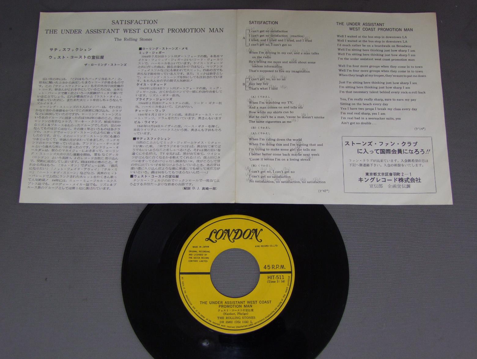 ROLLING STONESローリング・ストーンズ/SATISFACTIONサティスファクション HIT511 製造国:日本盤 / Media:7inch外観:EX盤の状態:EX 価格(税込):¥2,200(売約済) 送料 7inch:定形外郵便 360円~LP:定形外郵便 660円~送料は、注文の最終画面で確認頂けます。 > > ROLLING STONES/SATISFACTION 外観 (EX)特記事項:多少ヨレ有り。外観EXの共通説明:ダメージが限定的。中古品としては保存状態がよい方。シミ、ヨゴレ、スレ 少し~軽度。 盤の状態 (EX)特記事項:薄いスリキズ・スレ軽くある感じ。殆どが軽微なものの様子です。盤EXの共通説明:盤面のスリキズが薄いものが少し~軽度 音に出そうなものは無いように見える(軽微なソフトティック音は除く)。 Tweet それぞれの画像をクリックすると、大きい写真が見られます こちらの商品もお勧めです 770円 MICK JAGGERミック・ジャガー / SHE`S THE BOSSシーズ・ザ・ボス