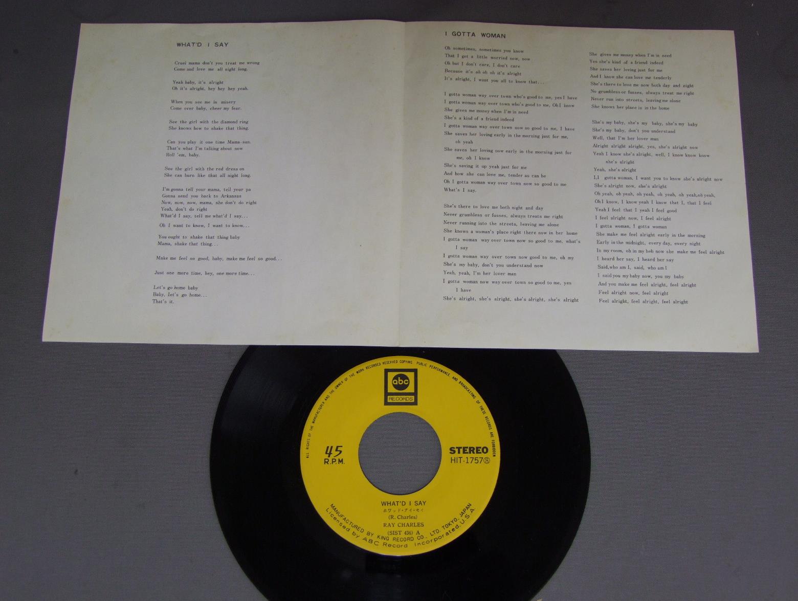 RAY CHARLESレイ・チャールズ/I GOTTA WOMANアイ・ガッタ・ウーマン HIT1757 製造国:日本盤 / Media:7inch外観:EX盤の状態:EX- 価格(税込):¥1,452(売約済) 送料 7inch:定形外郵便 360円~LP:定形外郵便 660円~送料は、注文の最終画面で確認頂けます。 > > RAY CHARLES/I GOTTA WOMAN 外観 (EX)特記事項:見開きと裏ジャケに薄いシミ外観EXの共通説明:ダメージが限定的。中古品としては保存状態がよい方。シミ、ヨゴレ、スレ 少し~軽度。 盤の状態 (EX-)特記事項:薄いスリキズ・細かい表面スレ軽くある感じ。全体的には殆どが軽微なものの様子です。盤EX-の共通説明:盤面のスリキズが多少有り。音に出そうなものは殆ど無いように見える~さほど気にならないぐらいの軽いプチ数カ所程度。 Tweet それぞれの画像をクリックすると、大きい写真が見られます こちらの商品もお勧めです 880円 ELVISエルヴィス・プレスリー / THAT`S THE WAY IT ISこの胸のときめきを/映画「エルヴィス・オン・ステージ」主題歌集 1,210円 VENTURES / BEST OF THE VENTURES vol.2 RED VINYL赤盤 770円 WANDA JACKSONワンダ・ジャクスン / WANDA JACKSON COUNTRY !ワンダ・ジャクスン・カントリー 990円 VENTURESベンチャーズ / ON STAGE ENCOREオン・ステージ・アンコール 770円 RICK NELSONリック・ネルソン / ALBUM SEVEN BY RICKアルバム・セブン・リック 1,650円 ELVIS PLESLEYエルヴィス.プレスリー / ELVIS-THAT`S THE WAY IT ISエルヴィス.オン・ステージVOL.1 1,210円 EVERLY BROTHERSエヴァリー・ブラザース / DATE WITH EVERY BROTHERSデイト・ウィズ・エヴァリー・ブラザーズ 1,210円 ELVIS PRESLEY / ELVIS IN PERSONプレスリー・イン・パーソン