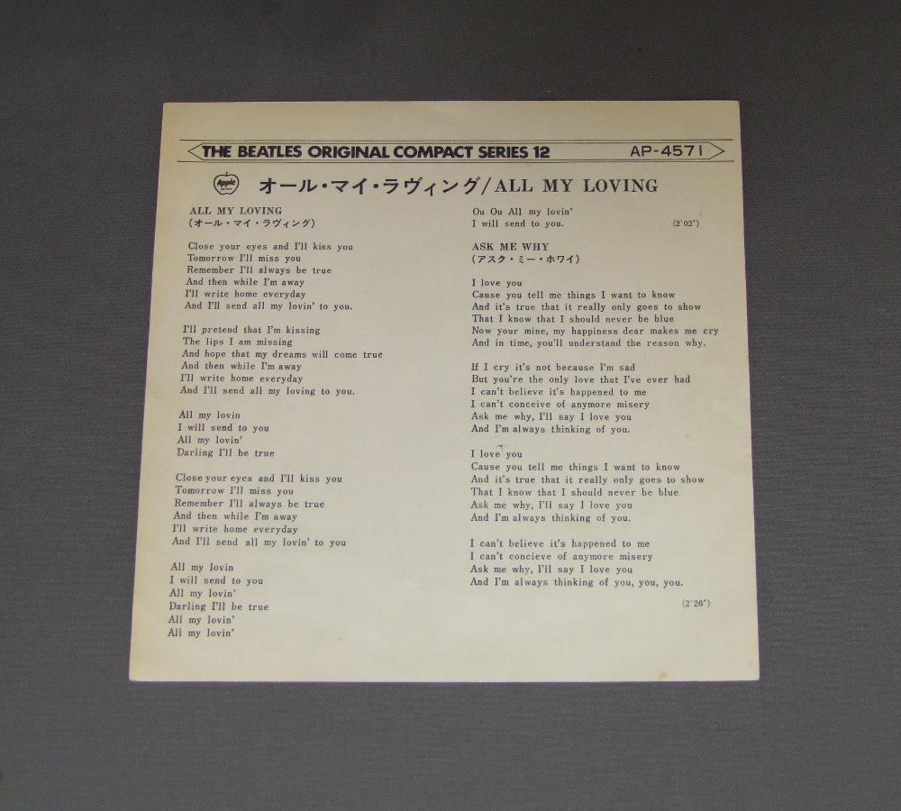 BEATLES/ALL MY LOVING AP4571 製造国:日本盤 / Media:7inch外観:EX-盤の状態:EX+ 価格(税込):¥770(売約済) 送料 7inch:定形外郵便 360円~LP:定形外郵便 660円~送料は、注文の最終画面で確認頂けます。 > > BEATLES/ALL MY LOVING 外観 (EX-)特記事項:日焼けやシミ有。外観EX-の共通説明:ダメージ軽度~多少。 中古品としては普通の状態。シミ、ヨゴレ、スレなど軽く~多少。 盤の状態 (EX+)特記事項:極薄いスリキズ・スレ少し。一見してきれいな状態です。盤EX+の共通説明:盤面の極薄いスリキズ、スレ少し程度 音に出そうなものは無いように見える(極軽微なソフトティック音は除く)。 Tweet それぞれの画像をクリックすると、大きい写真が見られます こちらの商品もお勧めです 1,650円 WINGSウィングス / OVER AMERICAUSAライブ 770円 PAUL MCCARTNEY&WINGSポール・マッカートニー&ウイングス / BAND ON THE RUNバンド・オン・ザ・ラン 1,320円 JOHN LENNON & YOKO ONOジョン・レノン.ヨーコ・オノ / MILK AND HONEYミルク・アンド・ハニー 1,210円 WINGSウィングス / VENUS & MARSヴィーナス・アンド・マース 1,650円 GEORGE HARRISONジョージ・ハリスン / DARK HORSEダーク・ホース 880円 PAUL MCCARTNEYポール・マッカートニー / TUG OF WARタッグ・オブ・ウォー 770円 JOHN LENNONジョン・レノン / PLASTIC ONO BANDプラスティック・オノ・バンド 1,540円 WINGSポール・マッカートニーとウイングス / LONDON TOWN