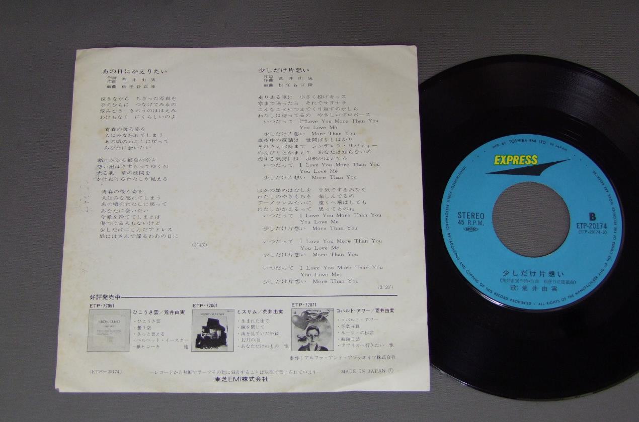 YUMI ARAI荒井由実/ドラマ「家庭の秘密」あの日にかえりたい ETP20174 製造国:日本盤 / Media:7inch外観:EX-盤の状態:EX 価格(税込):¥330(売約済) 送料 7inch:定形外郵便 360円~LP:定形外郵便 660円~送料は、注文の最終画面で確認頂けます。 > > YUMI ARAI/ 外観 (EX-)特記事項:ヨレやや有り。裏ジャケにシミ。外観EX-の共通説明:ダメージ軽度~多少。 中古品としては普通の状態。シミ、ヨゴレ、スレなど軽く~多少。 盤の状態 (EX)特記事項:薄いスリキズ・スレ少しある感じ。一見してきれいな感じです。盤EXの共通説明:盤面のスリキズが薄いものが少し~軽度 音に出そうなものは無いように見える(軽微なソフトティック音は除く)。 Tweet それぞれの画像をクリックすると、大きい写真が見られます こちらの商品もお勧めです 1,320円 JUN MAYUZUMI -TOMOKO OGAWA - CHIYO OKUMURA黛ジュン-小川知子-奥村チヨ / VOL2第二集 660円 TULIPチューリップ / MUGEN KIDO無限軌道 770円 CHIKA UEDA上田知華 / MISS HEARTミス・ハート 660円 GO NAGABUCHI長渕 剛 / GYAKURYU逆流 1,320円 TAKASHI SATO佐藤隆 / NUIT DU SAMEDI ET MATIN DU DIMANCHE土曜の夜と日曜の朝 880円 SUGIYAMA-K杉山清貴 / KONA WEATHER 880円 TWIST世良公則 &ツイスト / ファースト・アルバム 440円 MUNEYUKI SATOHさとう宗幸 / AOBAJO KOIUTA青葉城恋歌