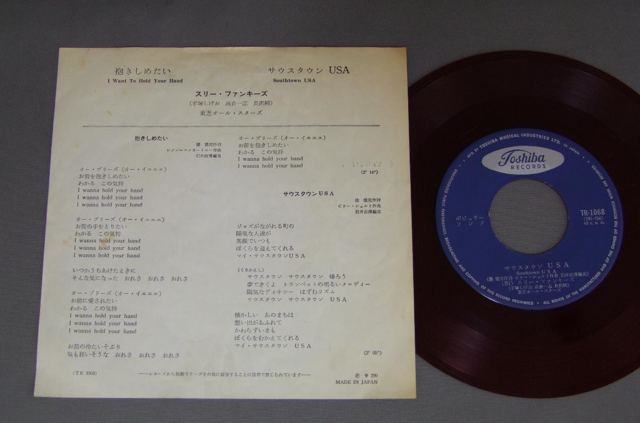 THREE FUNKEYSスリー・ファンキーズ/I WANT TO HOLD YOUR HAND抱きしめたい 赤盤 TR1068 製造国:日本盤 / Media:7inch外観:EX-盤の状態:EX 価格(税込):¥4,400(売約済) 送料 7inch:定形外郵便 360円~LP:定形外郵便 660円~送料は、注文の最終画面で確認頂けます。 > > THREE FUNKEYS/I WANT TO HOLD YOUR HAND 外観 (EX-)特記事項:ヨレ多少有り。シミ少し。裏側は多少日焼け感有り。外観EX-の共通説明:ダメージ軽度~多少。 中古品としては普通の状態。シミ、ヨゴレ、スレなど軽く~多少。 盤の状態 (EX)特記事項:薄いスリキズ・スレ軽くある感じ。殆どが軽微なものの様子です。盤EXの共通説明:盤面のスリキズが薄いものが少し~軽度 音に出そうなものは無いように見える(軽微なソフトティック音は除く)。 Tweet それぞれの画像をクリックすると、大きい写真が見られます こちらの商品もお勧めです 770円 MAYO SHOHNO庄野真代 / LAST SHOWラスト・ショー 1,210円 RYOKO MORIYAMA森山良子 / IN NASHVILLEイン・ナッシュビル 440円 AYUMI NAKAMURA中村あゆみ / FAIR CHILD 880円 CHAGE & ASUKAチャゲ&飛鳥 / LIVE IN TOKYO 81LIVE IN 田園コロシアム THE 夏祭り `81 1,650円 UCHOTEN有頂天 / PEACEピース 1,320円 SHOGO HAMADA浜田省吾 / SAND CASTLE 770円 REBECCAレベッカ / NOTHING TO LOSEナッシング・トゥ・ルーズ 770円 HIKASUヒカシュー / HIKASUヒカシュー