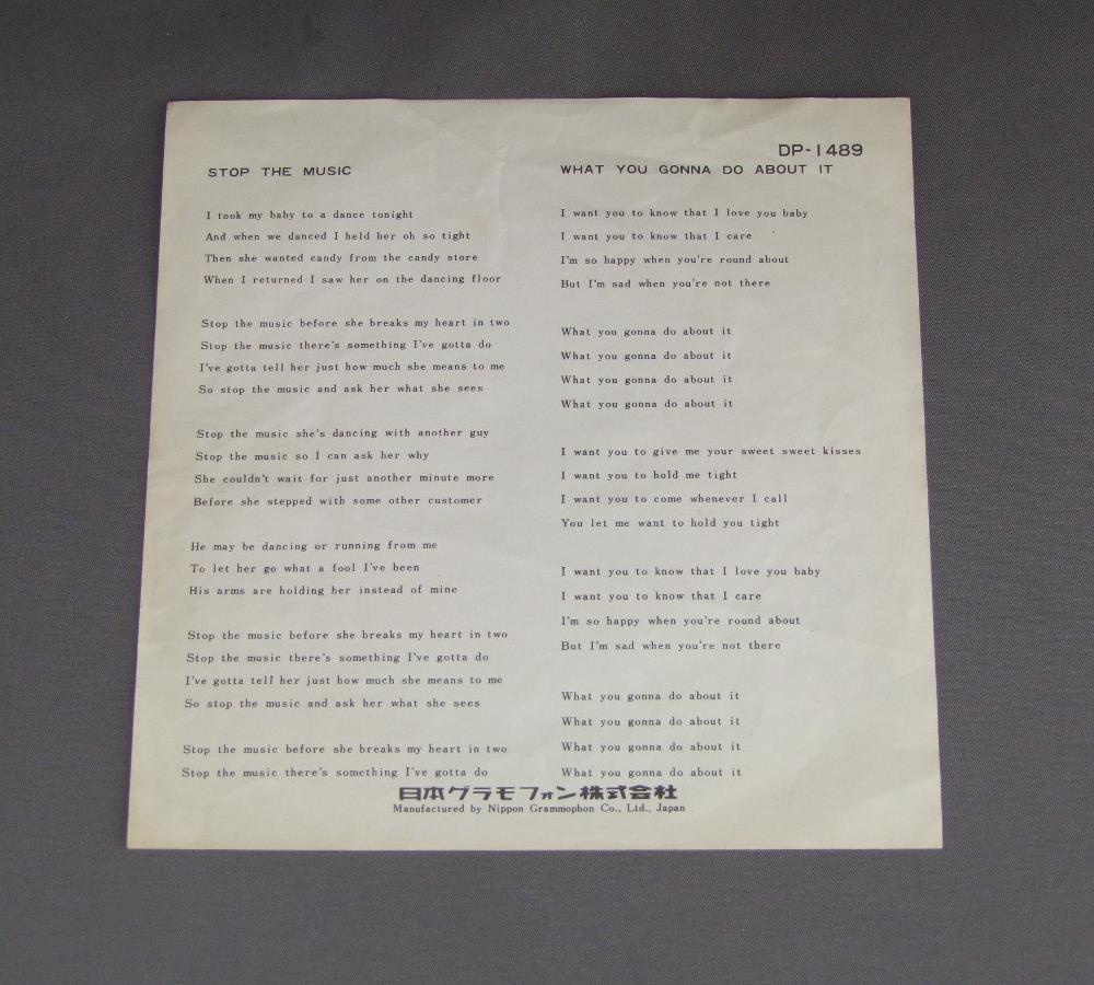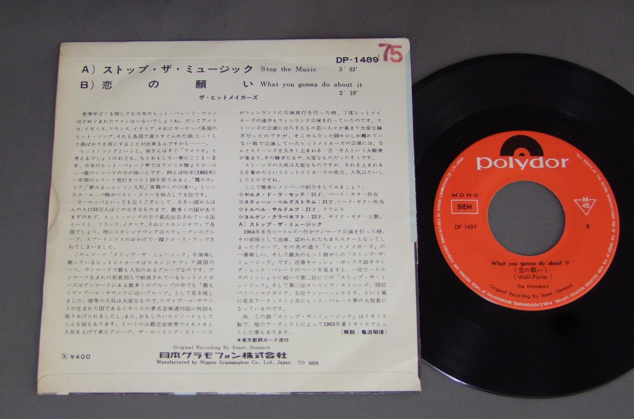 HITMAKERSヒットメイカーズ/STOP THE MUSICストップ・ザ・ミュージック DP1489 製造国:日本盤 / Media:7inch外観:EX-盤の状態:EX- 価格(税込):¥2,200(売約済) 送料 7inch:定形外郵便 360円~LP:定形外郵便 660円~送料は、注文の最終画面で確認頂けます。 > > HITMAKERS/STOP THE MUSIC 外観 (EX-)特記事項:表裏ジャケ共にレコード取り出し口付近に日焼け感。外観EX-の共通説明:ダメージ軽度~多少。 中古品としては普通の状態。シミ、ヨゴレ、スレなど軽く~多少。 盤の状態 (EX-)特記事項:薄いスリキズ・細かい表面スレ多少ある感じ。殆どが軽微なものの様子です。盤EX-の共通説明:盤面のスリキズが多少有り。音に出そうなものは殆ど無いように見える~さほど気にならないぐらいの軽いプチ数カ所程度。 Tweet それぞれの画像をクリックすると、大きい写真が見られます こちらの商品もお勧めです 2,640円 SPOTNICKSスプートニクス / KARELIA-THE BEST OF THE SPOTNICKS霧のカレリア-ベスト・オブ・ザ・スプートニクス 4,950円 ANIMALSアニマルズ / BEST ALBUM アニマルズのすべて 赤盤