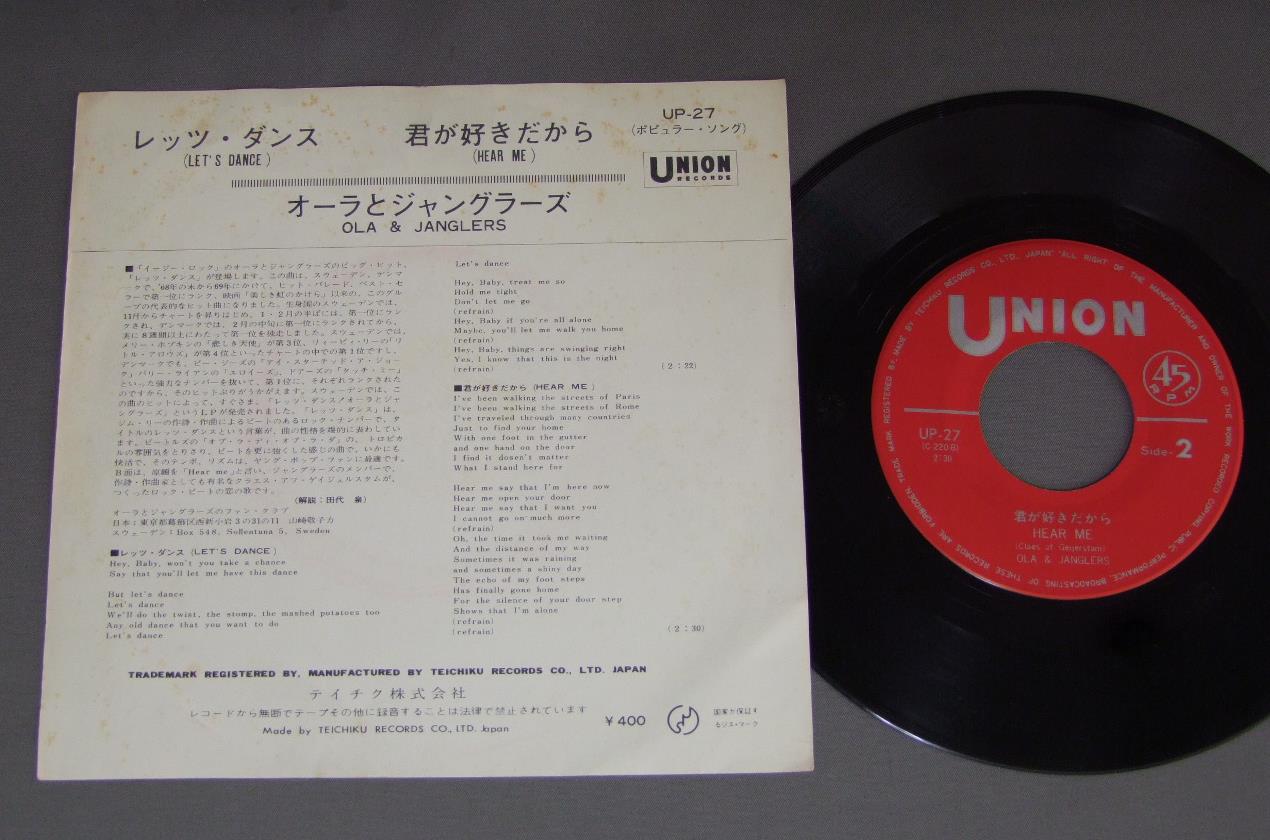 OLA & JANGLERSオーラとジャングラーズ/LET`S DANCEレッツ・ダンス UP27 製造国:日本盤 / Media:7inch外観:EX-盤の状態:EX- 価格(税込):¥660 送料 7inch:定形外郵便 360円~LP:定形外郵便 660円~送料は、注文の最終画面で確認頂けます。 > > OLA & JANGLERS/LET`S DANCE 外観 (EX-)特記事項:裏ジャケにシミ。外観EX-の共通説明:ダメージ軽度~多少。 中古品としては普通の状態。シミ、ヨゴレ、スレなど軽く~多少。 盤の状態 (EX-)特記事項:薄いスリキズ・細かい表面スレ多少ある感じ。殆どが軽微なものの様子です。盤EX-の共通説明:盤面のスリキズが多少有り。音に出そうなものは殆ど無いように見える~さほど気にならないぐらいの軽いプチ数カ所程度。 Tweet それぞれの画像をクリックすると、大きい写真が見られます こちらの商品もお勧めです 4,950円 ANIMALSアニマルズ / BEST ALBUM アニマルズのすべて 赤盤 2,640円 SPOTNICKSスプートニクス / KARELIA-THE BEST OF THE SPOTNICKS霧のカレリア-ベスト・オブ・ザ・スプートニクス