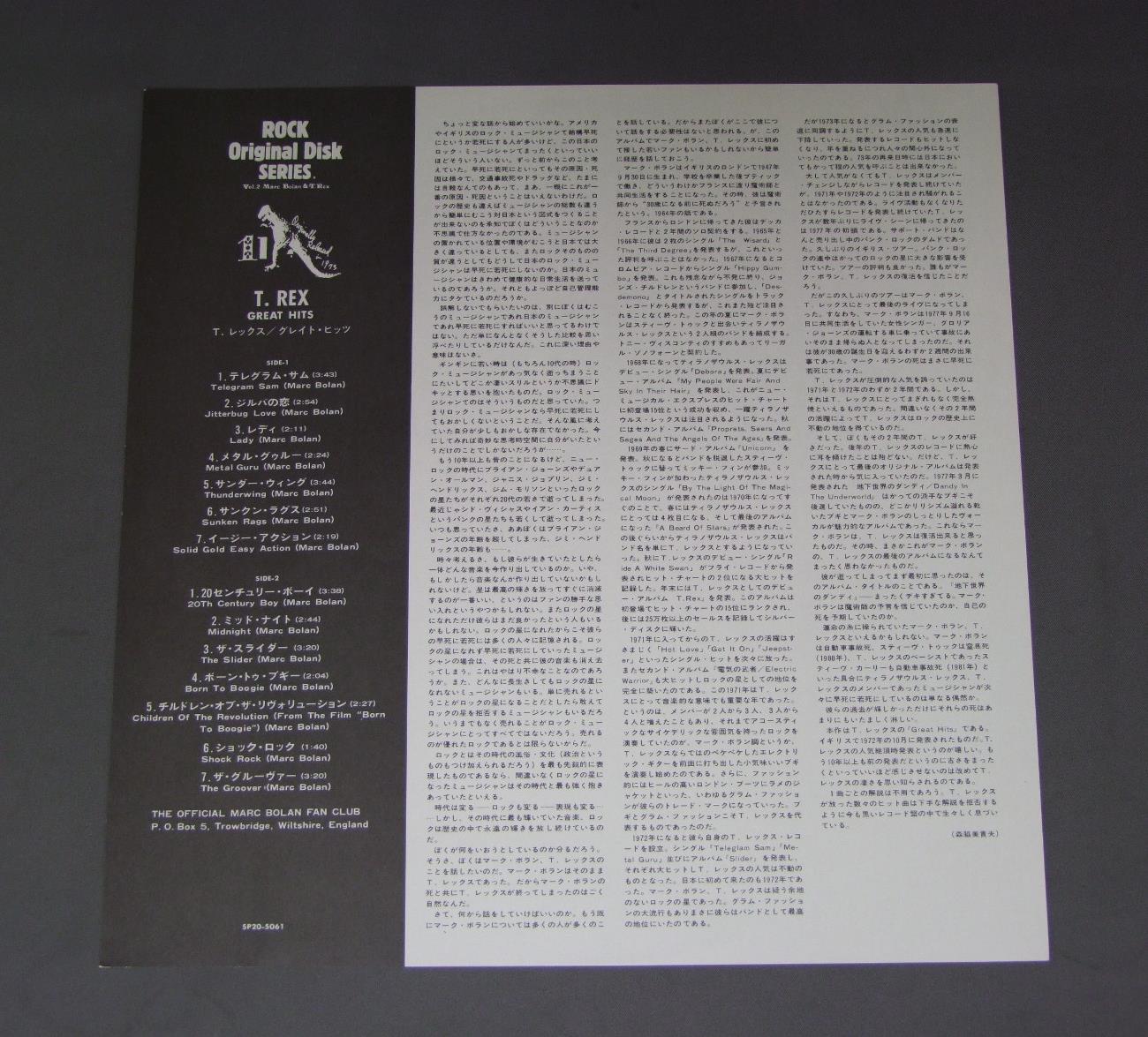 T. REXT・レックス/GREAT HITSグレート・ヒッツ SP20 5061 製造国:日本盤 / Media:LP外観:EX+盤の状態:EX+帯:EX+ 価格(税込):¥1,980(売約済) 送料 7inch:定形外郵便 360円~LP:定形外郵便 660円~送料は、注文の最終画面で確認頂けます。 > > T. REX/GREAT HITS 外観 (EX+)特記事項:特記なし。外観EX+の共通説明:中古としては美品、一見してきれいでダメージが軽微。シミ、ヨゴレ、スレ有っても僅か~少し。 盤の状態 (EX+)特記事項:薄いスリキズ・スレ少し。一見してきれいな状態です。盤EX+の共通説明:盤面の極薄いスリキズ、スレ少し程度 音に出そうなものは無いように見える(極軽微なソフトティック音は除く)。 帯の状態 (EX+):特記なし。 Tweet それぞれの画像をクリックすると、大きい写真が見られます こちらの商品もお勧めです 1,870円 LOLITA POPロリータ・ポップ / LOLITA POP危険な誘惑 990円 BAD COMPANYバッド・カンパニー / RUN WITH THE PACKバッド・カンパニー ?-ラン・ウィズ・ザ・パック 770円 ABBAアバ / GREATEST HITS VOL.2グレイテスト・ヒッツVOL.2 770円 ABBAアバ / ARRIVALアライバル 770円 ABBAアバ / VOULEZ-VOUSヴーレ・ヴー 1,210円 SKYスカイ / SKY 2スカイ2 1,320円 WHAMワム / MAKE IT BIGメイク・イット・ビッグ 1,210円 ABBAアバ / VOULEZ-VOUSヴーレ・ヴー