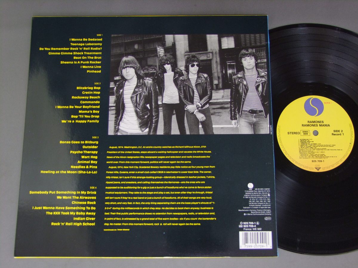 RAMONES/RAMONES MANIA 925 709 1 製造国:独盤 / Media:LP外観:EX+盤の状態:EX+ 価格(税込):¥1,980(売約済) 送料 7inch:定形外郵便 360円~LP:定形外郵便 660円~送料は、注文の最終画面で確認頂けます。 > > RAMONES/RAMONES MANIA 外観 (EX+)特記事項:特記なし。外観EX+の共通説明:中古としては美品、一見してきれいでダメージが軽微。シミ、ヨゴレ、スレ有っても僅か~少し。 盤の状態 (EX+)特記事項:A-2の薄い線はプレスミスのようで音には影響ないようです。スリキズ、スレは少なくきれいな感じ。盤EX+の共通説明:盤面の極薄いスリキズ、スレ少し程度 音に出そうなものは無いように見える(極軽微なソフトティック音は除く)。 Tweet それぞれの画像をクリックすると、大きい写真が見られます こちらの商品もお勧めです 1,650円 NINE NINE NINE999 / BIGGEST PRIZE IN SPORT 1,320円 RAPED EPLIEPTICS etc / COM STAINS OVER MY RECORD COLLECTION 1,650円 VARIOUS UK PUNK GROUPS / KIDS ARE UNITED 770円 VARIOUS ARTISTS / HARDCORE BREAKOUT U.S.A 1,980円 CONFLICT / TURNING REBELLION INTO MONEY 770円 NAME / DANGEROUS TIMES 1,320円 STRAY CATS / GONNA BALL 2,750円 FRENZYフレンジー / HALL OF MIRRORSホール・オブ・ミラーズ