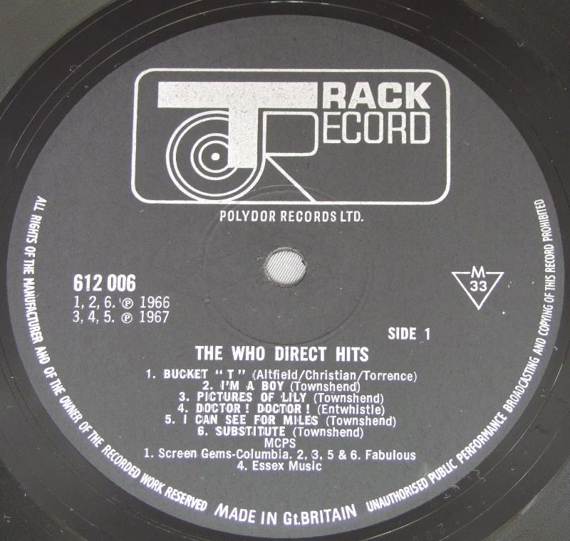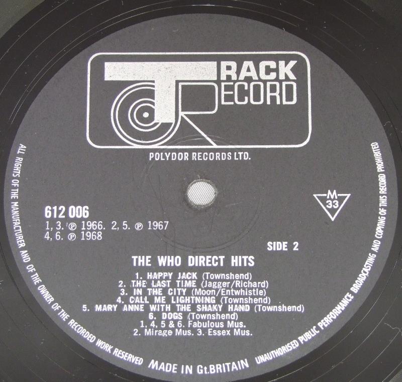 WHO/DIRECT HITS MONO 612 006 製造国:英国盤 / Media:LPMatrix:A▽1 | B▽1外観:EX盤の状態:EX 価格(税込):¥13,200(売約済) 送料 7inch:定形外郵便 360円~LP:定形外郵便 660円~送料は、注文の最終画面で確認頂けます。 > > WHO/DIRECT HITS MONO 外観 (EX)特記事項:表ジャケ側はコーティングのヨレシワも少なく、スレやスリキズ等も薄い感じ。裏ジャケ側にレコードリングスレやスリキズ多少有り。外観EXの共通説明:ダメージが限定的。中古品としては保存状態がよい方。シミ、ヨゴレ、スレ 少し~軽度。 盤の状態 (EX)特記事項:薄いスリキズ・スレ軽く有る感じ。殆どが軽微なものの様子で、きれいな印象。曲間など、静かなところを中心にMONO針で聴いて見ましたが、チリノイズ少ないきれいな再生具合でした。盤EXの共通説明:盤面のスリキズが薄いものが少し~軽度 音に出そうなものは無いように見える(軽微なソフトティック音は除く)。 Tweet それぞれの画像をクリックすると、大きい写真が見られます こちらの商品もお勧めです 5,500円 WHO / MY GENERATION ( VIRGIN )