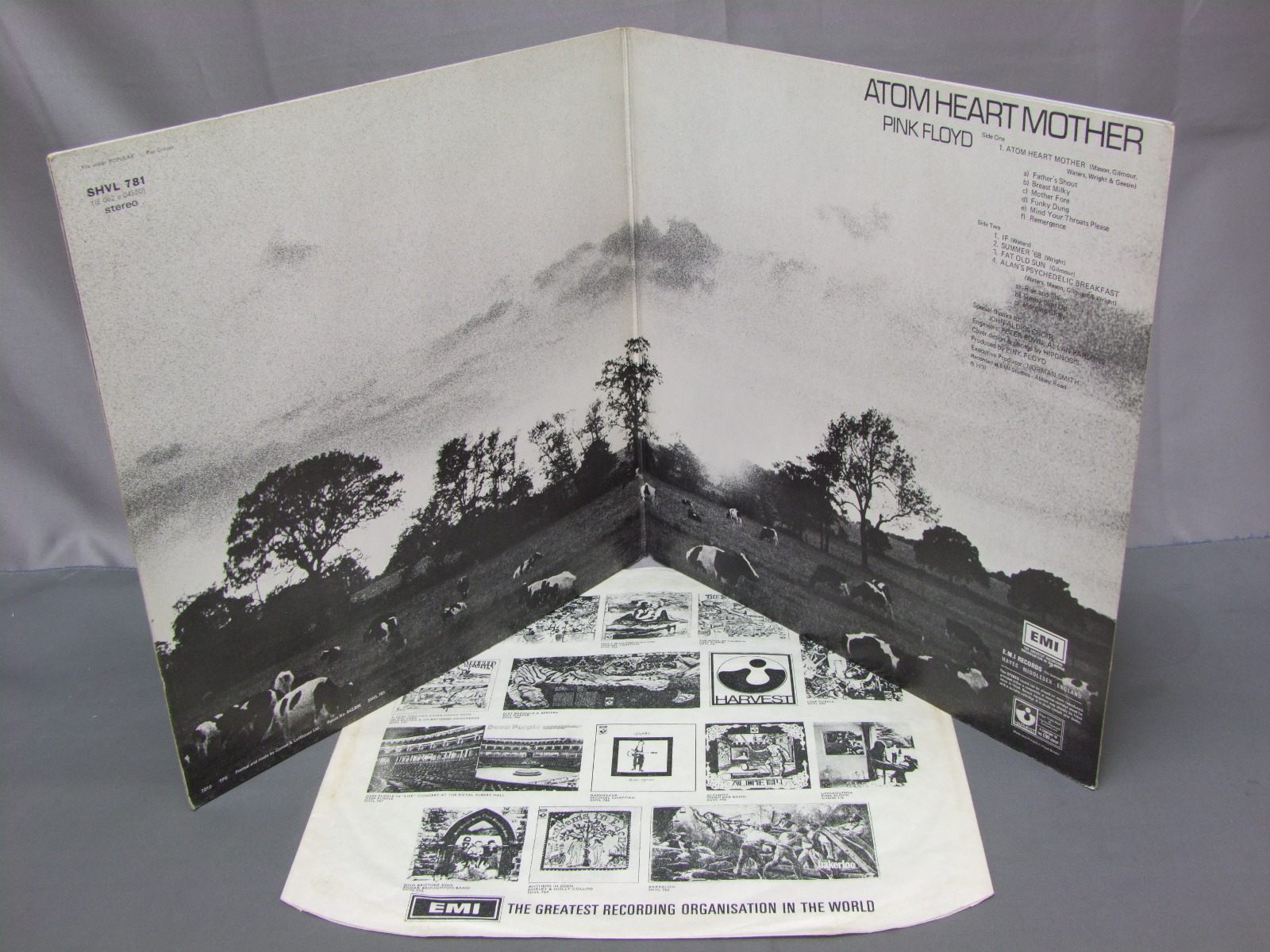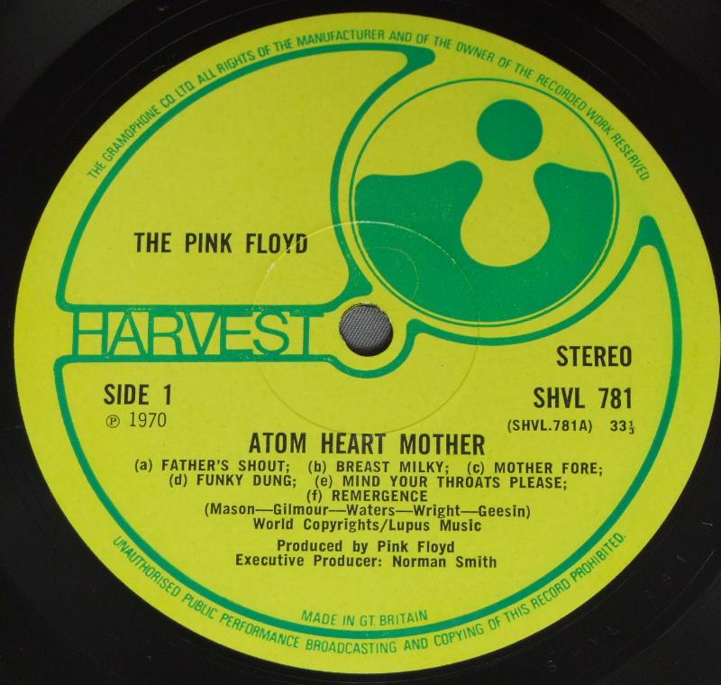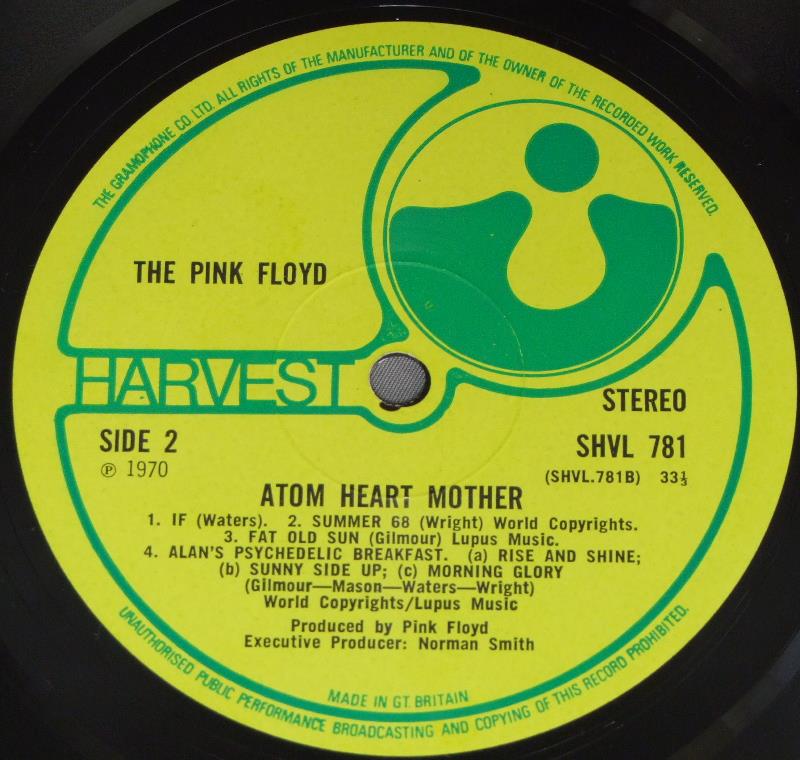 PINK FLOYD/ATOM HEART MOTHER原子心母 SHVL781 製造国:英国盤 / Media:LPMatrix:A-1G/12/MR | B-1G/2/GG外観:EX盤の状態:EX- 価格(税込):¥16,500(売約済) 送料 7inch:定形外郵便 360円~LP:定形外郵便 660円~送料は、注文の最終画面で確認頂けます。 > > PINK FLOYD/ATOM HEART MOTHER 外観 (EX)特記事項:背にスリキズが少し。底スレ多少有り。表裏ジャケ共に表面にスレよごれ軽等多少有り。外観EXの共通説明:ダメージが限定的。中古品としては保存状態がよい方。シミ、ヨゴレ、スレ 少し~軽度。 盤の状態 (EX-)特記事項:薄いスリキズ・スレ軽くある感じ。ほとんどが軽微なものの様子です。B2にプレスミスがあり、薄いプチが軽く出ています。 曲間など、静かなところを中心に聴いて見ましたが、スクラッチ系のチリ感多少程度。音自体はクリアーでしっかりなっている様子です。盤EX-の共通説明:盤面のスリキズが多少有り。音に出そうなものは殆ど無いように見える~さほど気にならないぐらいの軽いプチ数カ所程度。 Tweet それぞれの画像をクリックすると、大きい写真が見られます こちらの商品もお勧めです