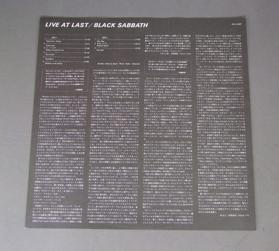BLACK SABBATH/LIVE AT LAST SP25 5009 製造国:日本盤 / Media:LP外観:EX+盤の状態:EX 価格(税込):¥1,100(売約済) 送料 7inch:定形外郵便 360円~LP:定形外郵便 660円~送料は、注文の最終画面で確認頂けます。 > > BLACK SABBATH/LIVE AT LAST 外観 (EX+)特記事項:特記なし。外観EX+の共通説明:中古としては美品、一見してきれいでダメージが軽微。シミ、ヨゴレ、スレ有っても僅か~少し。 盤の状態 (EX)特記事項:薄いスリキズ・スレ軽くある感じ。軽微なものの様子です。盤EXの共通説明:盤面のスリキズが薄いものが少し~軽度 音に出そうなものは無いように見える(軽微なソフトティック音は除く)。 Tweet それぞれの画像をクリックすると、大きい写真が見られます こちらの商品もお勧めです 660円 NIGHT RANGER / MIDNIGHT MADNESS + BOOKMIDNIGHT MADNESS + BOOK付 660円 ANGELエンジェル / ANGEL 770円 NIGHT RANGERナイト・レンジャー / MIDNIGHT MADNESSミッドナイト・マッドネス 1,320円 MICHAEL SCHENKER GROUPマイケル・シェンカー・グループ / 1st ALBUM神(帰ってきたフライング・アロウ 880円 MICHAEL SCHENKER GROUPマイケル・シェンカー・グル-プ / CRY FOR THE NATIONSマイケル・シェンカー ハーフ・ライヴ! 1,210円 TYGERS OF PAN TANGタイガース・オブ・パンタン / CAGE危険なパラダイス 1,210円 NIGHT RANGERナイト・レンジャー / MIDNIGHT MADNESSナイト・レンジャー 770円 NIGHT RANGERナイト・レンジャー / DAWN PATROL緊急指令