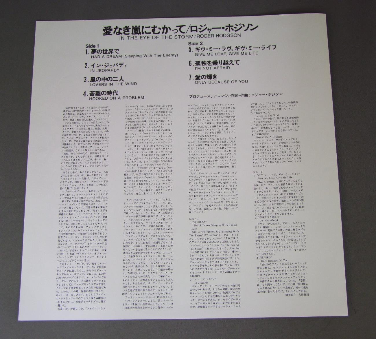 ROGER HODGSON/IN THE EYE OF THE STORM愛なき嵐にむかって AMP28110 製造国:日本盤 / Media:LP外観:EX+盤の状態:EX+ 価格(税込):¥1,320(売約済) 送料 7inch:定形外郵便 360円~LP:定形外郵便 660円~送料は、注文の最終画面で確認頂けます。 > > ROGER HODGSON/IN THE EYE OF THE STORM 外観 (EX+)特記事項:付属品にシミ、よごれ有。外観EX+の共通説明:中古としては美品、一見してきれいでダメージが軽微。シミ、ヨゴレ、スレ有っても僅か~少し。 盤の状態 (EX+)特記事項:B面にスレキズ有りますが音には影響ない程度のものでした。他薄いスリキズ・スレ少し。一見してきれいな状態です。盤EX+の共通説明:盤面の極薄いスリキズ、スレ少し程度 音に出そうなものは無いように見える(極軽微なソフトティック音は除く)。 Tweet それぞれの画像をクリックすると、大きい写真が見られます こちらの商品もお勧めです 2,420円 BILLY JOELビリー・ジョエル / NYLON CURTEN MASTER SOUND PRESSINGナイロン・カーテン(マスター・サウンド盤) 1,320円 ROGER VOUDOURISロジャー・ヴドゥーリス / GUY LIKE MEロマンの囁き 880円 BERTIE HIGGINSバーティ・ヒギンズ / JUST ANOTHER DAY IN PARADISEカサブランカ 770円 JACKSON BROWNEジャクソン・ブラウン / LAWYERS IN LOVE愛の使者 662円 RICK SPRINGFIELDリック・スプリングフィールド / SUCCESS HASN`T SPOILED ME YETアメリカン・ガール 770円 ELTON JOHNエルトン・ジョン / SINGLE MANシングル・マン 880円 PAUL RODGERSポール・ロジャース / CUT LOOSEカット・ルース 440円 MAX CARLマックス・カール / CIRCLEサークル