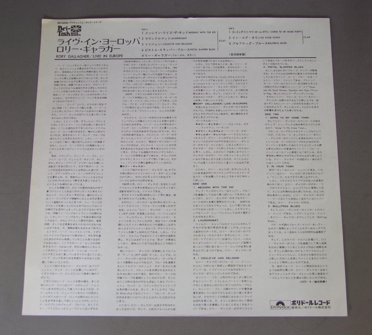 RORY GALLAGHER/LIVE! IN EUROPE MP2258 製造国:日本盤 / Media:LP外観:EX盤の状態:EX+ 価格(税込):¥2,457(売約済) 送料 7inch:定形外郵便 360円~LP:定形外郵便 660円~送料は、注文の最終画面で確認頂けます。 > > RORY GALLAGHER/LIVE! IN EUROPE 外観 (EX)特記事項:背スレ有。表ジャケ右下によごれ小。外観EXの共通説明:ダメージが限定的。中古品としては保存状態がよい方。シミ、ヨゴレ、スレ 少し~軽度。 盤の状態 (EX+)特記事項:薄いスリキズ・スレ少し。一見してきれいな状態です。盤EX+の共通説明:盤面の極薄いスリキズ、スレ少し程度 音に出そうなものは無いように見える(極軽微なソフトティック音は除く)。 Tweet それぞれの画像をクリックすると、大きい写真が見られます こちらの商品もお勧めです 1,210円 TOMMY SHAWトミー・ショウ / GIRLS WITH GUNSガール・ウィズ・ガン 1,320円 BRUCE SPRINGSTEENブルース・スプリングスティーン / RIVERリバー 1,210円 ADAMOアダモ / ALL ABOUT ADAMO DELUXE DOUBLEデラックス・ダブル アダモのすべて 660円 ROBERT GOULETロバート・グーレ / SINCERELY YOURS 60s ISSUEニュー・トップ・ガイ ロバート・グーレは歌う ペラジャケ 770円 DON HOドン・ホー / DON HO LIVE AT THE POLYNESIAN PALACEドン・ホー・ライヴ・アット・ザ・ポリネシアン・パレス 990円 CLIFF RICHARDクリフ・リチャード / DELUXE IN CLIFF RICHARDデラックス イン クリフ・リチャード 770円 JOHN DENVERジョン・デンバー / JOHN DENVER`S GREATEST HITS故郷の詩 1,320円 ROGER VOUDOURISロジャー・ヴドゥーリス / GUY LIKE MEロマンの囁き