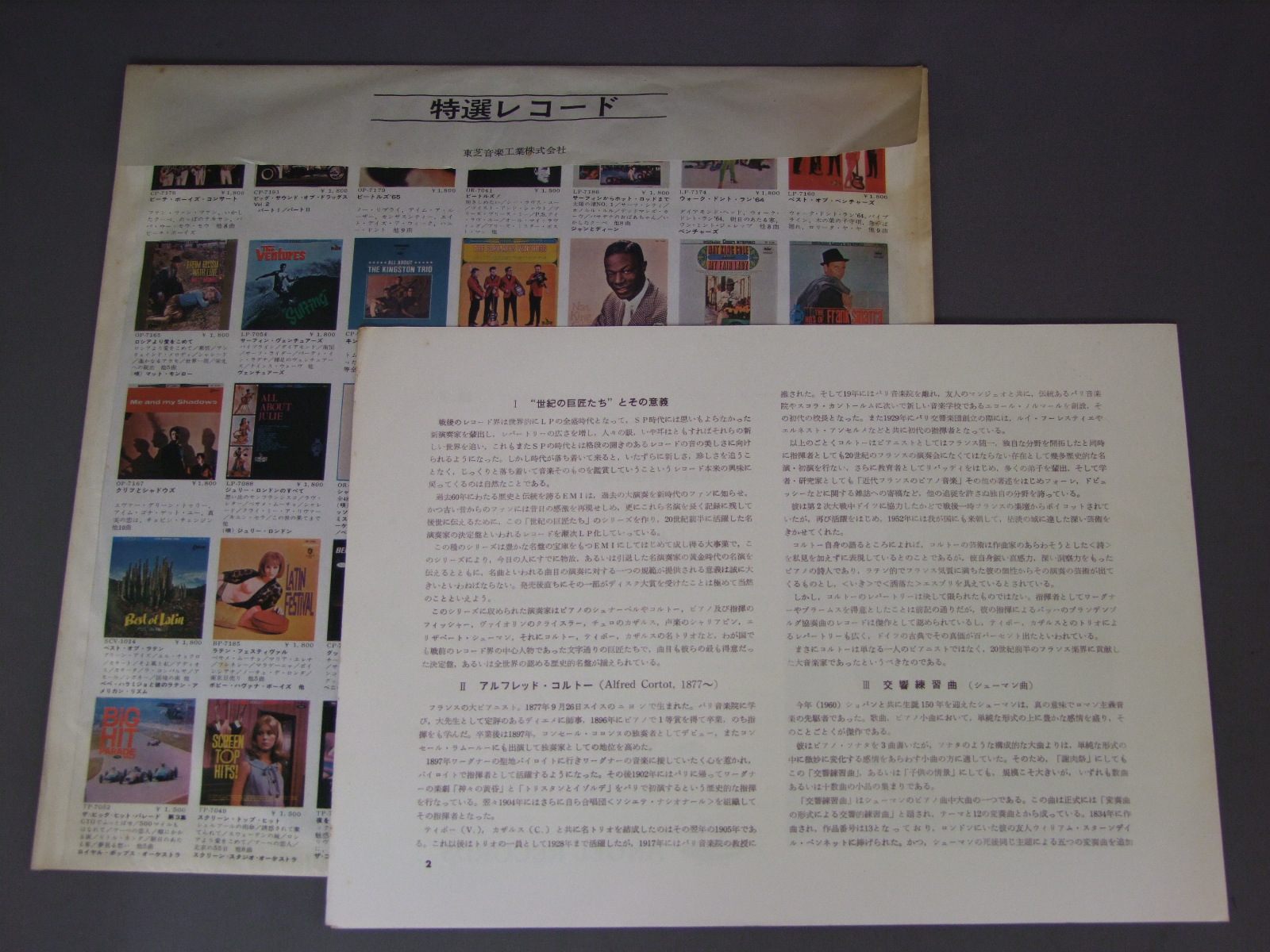 CORTOT/SCHUMANN:ETUDES SYMPHONIQUES ETC. GR31 製造国:日本盤 / Media:LP外観:EX-盤の状態:EX 価格(税込):¥550(売約済) 送料 7inch:定形外郵便 360円~LP:定形外郵便 660円~送料は、注文の最終画面で確認頂けます。 > > CORTOT/SCHUMANN:ETUDES SYMPHONIQUES ETC. 外観 (EX-)特記事項:ヘリにスレ有。ジャケ表面にシミ、よごれ有、スレ有。付属品にシミ、よごれ有。外観EX-の共通説明:ダメージ軽度~多少。 中古品としては普通の状態。シミ、ヨゴレ、スレなど軽く~多少。 盤の状態 (EX)特記事項:薄いスリキズ・スレ軽くある感じ。プチ出そうなところは少しだけで、ほとんどが軽微なものの様子です。盤EXの共通説明:盤面のスリキズが薄いものが少し~軽度 音に出そうなものは無いように見える(軽微なソフトティック音は除く)。 Tweet それぞれの画像をクリックすると、大きい写真が見られます こちらの商品もお勧めです 770円 COLLEGIUM AUREUMコレギウム・アウレウム合奏団 / MOZART - SYM.N G-MOLL KV550モーツアルト - 交響曲第40番33番 990円 KARAJAN-MICHEL SCHWALBEカラヤン-ミシエル・シュヴァルベ / R. STRAUSS-EIN HELDENLEBENR・シュトラウス-英雄の生涯 990円 KEMPFF - LEITNER - BERLIN PHILHARMONIC ORCHESTRAケンプ / BEETHOVEN - PIANO CONCERTO NO5 EMPERORベートーヴェン - ピアノ協奏曲第5番皇帝 1,320円 WILHELM PITZウイルヘルム・ピッツ / BAYREUTH FESTIVALバイロイト音楽祭-ワーグナー合唱曲集 990円 CLUYTENS - BERLIN PHIL.クリュイタンス -ベルリン・フィル / BEETHOVEN - SIX OVERTURESベートーヴェン序曲集 1,540円 ALFONSO MORENO & DEBORAH MARIOTTIアルフォンソ・モレーノ & デボラ・マリオッティ-エンリケ・バティス / RODRIGO-CONCIERTO MADRIGALロドリーゴ-マドリガル協奏曲-交響詩 青いゆりのために 他 1,320円 KARAJAN - BERLIN PHIL.カラヤン - ベルリンフィル / BRUCKNER SYMPHONY NO.4ブルックナー ロマンティック 990円 MUNCH - ROTTERDAM PHILHARMONISCH ORKESTミュンシュ - ロッテルダム・フィルハーモニー管弦楽団 / BEETHOVEN - SYMPHONY NO.6`PASTORALE`ベートーヴェン交響曲第6番`田園`