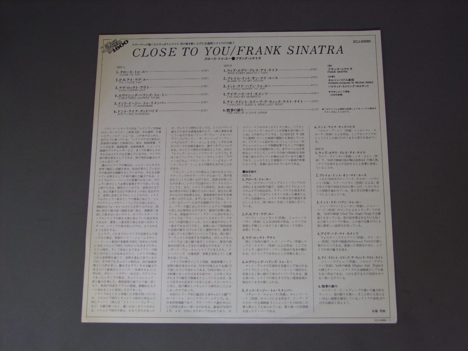 FRANK SINATRA/CLOSE TO YOU ECJ50085 製造国:日本盤 / Media:LP外観:EX-盤の状態:EX 価格(税込):¥1,100(売約済) 送料 7inch:定形外郵便 360円~LP:定形外郵便 660円~送料は、注文の最終画面で確認頂けます。 > > FRANK SINATRA/CLOSE TO YOU 外観 (EX-)特記事項:背や上ヘリ付近に日焼け感有り。外観EX-の共通説明:ダメージ軽度~多少。 中古品としては普通の状態。シミ、ヨゴレ、スレなど軽く~多少。 盤の状態 (EX)特記事項:薄いスリキズ・スレ軽くある感じ。軽微なものの様子です。盤EXの共通説明:盤面のスリキズが薄いものが少し~軽度 音に出そうなものは無いように見える(軽微なソフトティック音は除く)。 Tweet それぞれの画像をクリックすると、大きい写真が見られます こちらの商品もお勧めです 1,210円 MATT DENNISマット・デニス・トリオ / MATT DENNIS PLAYS & SINGS MATT DENNISプレイズ・アンド・シングス 770円 NANCY WILSONナンシー・ウィルソン / GODSEND君に捧げる心の歌 1,320円 YUKARI KANEKO金子由香利 / MEGURIAIめぐり逢い 660円 WOODY HERMAN AND HIS ORCHESTRAウディ・ハーマン・オーケストラ / BLUE FLAMEブルー・フレーム 770円 BUDDY GRECOバディ・グレコ / HERE`S BUDDY GRECOヒアーズ・バディ・グレコ 770円 NANCY WILSONナンシー・ウィルスン / BUT BEAUTIFULバット・ビューティフル 4,400円 ARNESTINE ANDERSONアーネスティン・アンダーソン / SUNSHINE AUTOGRAPHEDサンシャイン サイン付 1,210円 THE SWINGLE SINGERS - I MUSICI - BOHMスイングル・シンガーズ / THE SWINGLE SINGERS MEETS W.A.MOZARTスイングル・ガールズとモーツァルトの対話