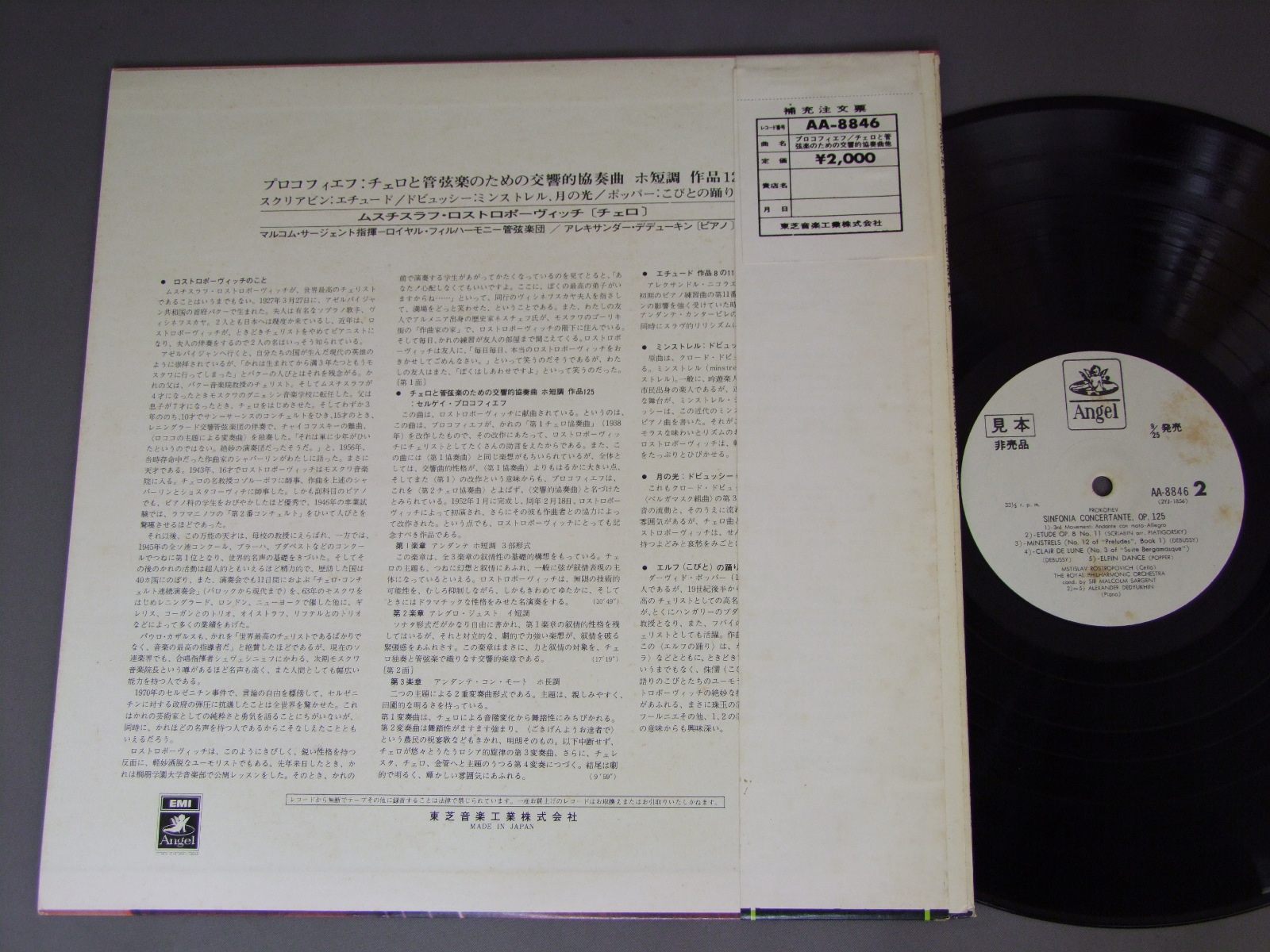 SARGENTサージェント/PROKOFIEV SINFONIA CONCERTATEプロコフィエフ/チェロと管弦楽のための交響的協奏曲 AA8846 製造国:日本盤 / Media:LP外観:EX-盤の状態:EX+ 価格(税込):¥550(売約済) 送料 7inch:定形外郵便 360円~LP:定形外郵便 660円~送料は、注文の最終画面で確認頂けます。 > > SARGENT/PROKOFIEV SINFONIA CONCERTATE 外観 (EX-)特記事項:裏側にシミ。外観EX-の共通説明:ダメージ軽度~多少。 中古品としては普通の状態。シミ、ヨゴレ、スレなど軽く~多少。 盤の状態 (EX+)特記事項:薄いスリキズ・スレ少し。一見してきれいな状態です。盤EX+の共通説明:盤面の極薄いスリキズ、スレ少し程度 音に出そうなものは無いように見える(極軽微なソフトティック音は除く)。 帯の状態 ():裏側によごれ その他:白見本盤 Tweet それぞれの画像をクリックすると、大きい写真が見られます こちらの商品もお勧めです 770円 WALTERワルター / MOZART/SYM.S NOS28 & 35 HAFFNER etcモーツァルト/交響曲 28番&第35番ハフナー 990円 SCHURICHT-PAULIKシューリヒト-パウリック / STRAUSS VALSES ET POLKASシュトラウス?世-ワルツとポルカ名曲集 美しく青きドナウ-ウィーンの森の物語 990円 BERNSTEIN - NEW YORK PHILHARMONICバーンスタイン - ニューヨークフィルハーモニック / DVORAK - NEW WORLDドボルザーク 新世界 770円 KNAPPERTSBUSH - VIENNA PHILHARMONIC ORCHESTRAクナッパーツブッシュ - ウィーンフィルハーモニー管弦楽団 / KNAPPERTSBUSH CONDUCTS WAGNERワーグナー名曲集 1,320円 ORMANDY - PHILADELPHIA ORCH.オーマンディ - フィラデルフィア管弦楽団 / MOUSSORGSKY - PICTURES AT AN EXHIBITION (RAVEL)ムソルグスキー - 展覧会の絵 (ラヴェル編 ) 990円 FURTWANGLER - BPOフルトヴェングラー - ベルリン・フィル / BEETHOVEN - EROICA SYM.ベートーヴェン交響曲第3番 990円 THOMAS SCHIPPERS - THE PHILHAMONIA ORCHESTRAトーマス・シッパース - フィルハーモニア管弦楽団 / PROKOFIEV - SYMPHONY NO.5プロコフィエフ - 交響曲第5番 990円 TOSCANINI - NBC SYM ORCHトスカニーニ - NBC交響楽団 / TCHAIKOVSK - PIANO CONCERTO NO1チャイコフスキー - ピアノ協奏曲 第1番