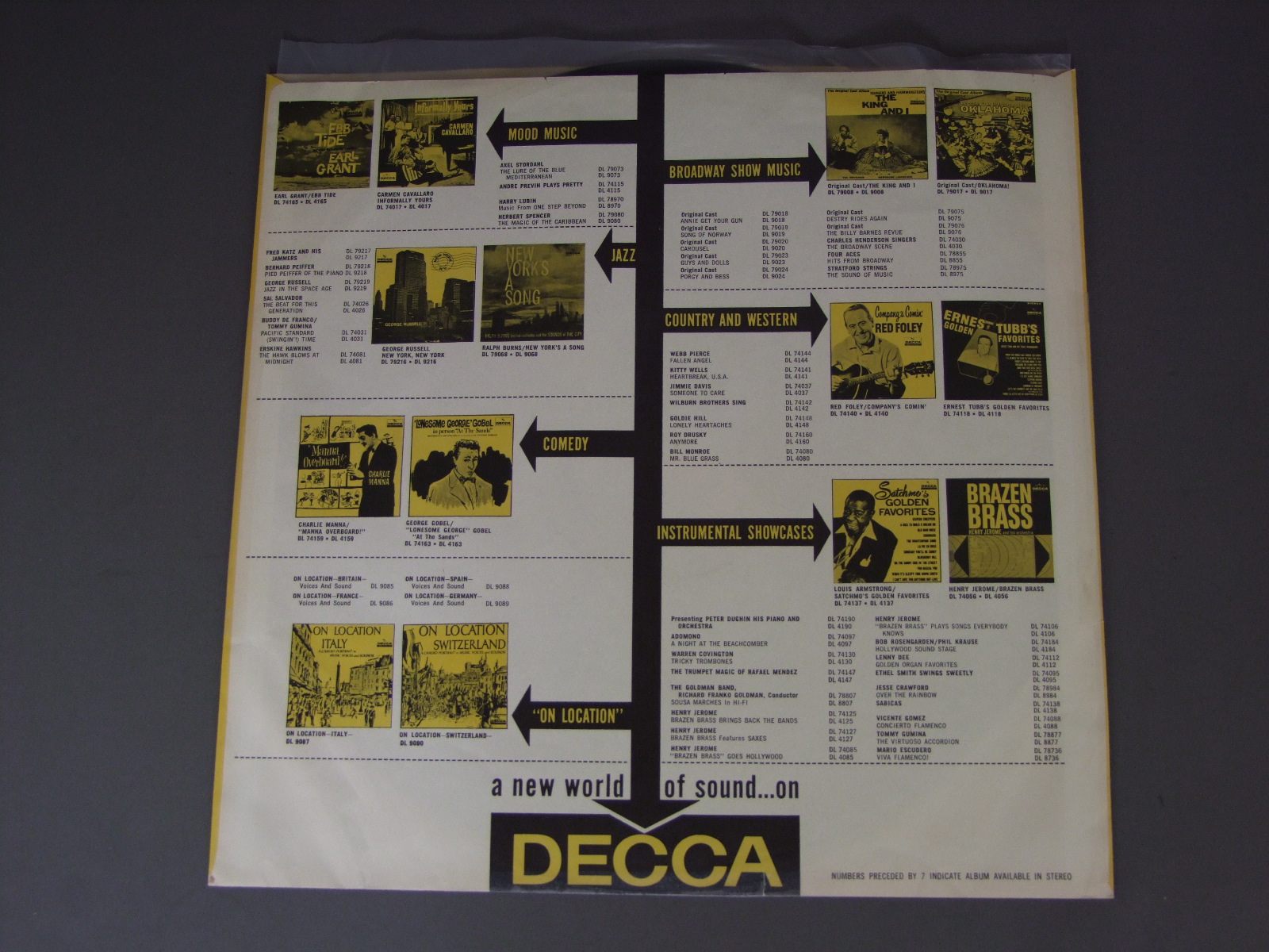 CARMEN CAVALLARO/POET OF THE PIANO-HITS FROM HOLLYWOOD DL74274 製造国:米国盤 / Media:LP外観:VG+盤の状態:EX- 価格(税込):¥660(売約済) 送料 7inch:定形外郵便 360円~LP:定形外郵便 660円~送料は、注文の最終画面で確認頂けます。 > > CARMEN CAVALLARO/POET OF THE PIANO-HITS FROM HOLLYWOOD 外観 (VG+)特記事項:上ヘリに割れの補修あり。ジャケ表面にスレよごれ。外観VG+の共通説明:ダメージやや有り。シミ、ヨゴレ、スレなど多少~やや多め。 盤の状態 (EX-)特記事項:薄いスリキズ・細かい表面スレ軽くある感じ。全体的には殆どが軽微なものの様子です。盤EX-の共通説明:盤面のスリキズが多少有り。音に出そうなものは殆ど無いように見える~さほど気にならないぐらいの軽いプチ数カ所程度。 Tweet それぞれの画像をクリックすると、大きい写真が見られます こちらの商品もお勧めです 770円 ALFRED NEWMAN / LOVE SCENES 990円 SUSAN MAZER - STEVEN HALPERN - DALLAS SMITH / LIFETIDE 770円 CLAUDE BLOUIN / BALLROOM DANCIHG