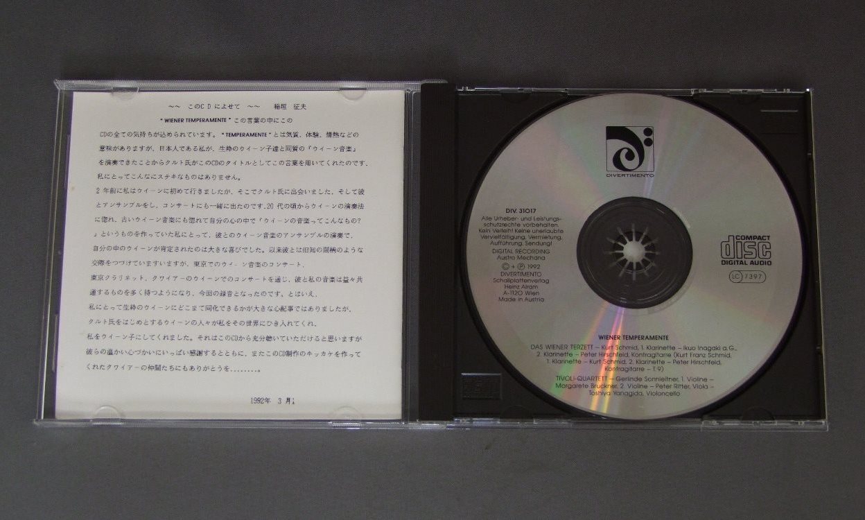 WIENER TEMPERAMENTE+IKUO INAGAKI稲垣征夫/WIENER TEMPERAMENTE DIV31017 製造国:輸入盤 / Media:CD外観:EX盤の状態:EX+ 価格(税込):¥660 送料 7inch:定形外郵便 360円~LP:定形外郵便 660円~送料は、注文の最終画面で確認頂けます。 > > WIENER TEMPERAMENTE+IKUO INAGAKI/WIENER TEMPERAMENTE 外観 (EX)特記事項:ヨレ、スレ、シミなど小 - 軽度です。外観EXの共通説明:ダメージが限定的。中古品としては保存状態がよい方。シミ、ヨゴレ、スレ 少し~軽度。 盤の状態 (EX+)特記事項:微細なスリキズが少々。きれいな感じの盤面です。盤EX+の共通説明:盤面の極薄いスリキズ、スレ少し程度 音に出そうなものは無いように見える(極軽微なソフトティック音は除く)。 その他:INAGAKI IKUO Tweet それぞれの画像をクリックすると、大きい写真が見られます こちらの商品もお勧めです 990円 JOCHUM - CONCERTGEBOUW ORCHESTRAヨッフム - アムステルダム・コンセルトヘボウ管弦楽団 / BEETHOVEN - SYMPHONY NO5ベートーヴェン - 交響曲第5番 運命 1,540円 BOHM - BERLINER PHILHARMONIKERベーム - ベルリン・フィル / SCHUBERT - SYMPHONIEN NR.5シューベルト交響曲第5番 2,860円 JOCHUM - CHOR UND ORCHESTER DES BAYERISCHEN RUNDFUNKSヨッフム - バイエルン放送交響楽団 / HAYDN - MISSA SANCTAE CAECILIAEハイドン - チェチリアのミサ 1,540円 ENTREMONT - ORMANDY - PHILADELPHIA ORCHESTRAアントルモン - オーマンディ - フィラデルフィア交響楽団 / LISZT - CONCERTO NO1リスト - ピアノ協奏曲第1番 1,540円 LAWRENCE FOSTER - HOUSTON SYMPHONY ORCHESTRAローレンス・フォスター - ヒューストン交響楽団 / PAUL CHIHARA - SYMPHONY IN CELEBRATIONポール・チハラ - SYMPHONY IN CELEBRATION 1,760円 KARAJAN - BERLINER PHILHARMONIKERカラヤン - ベルリン・フィル / HAYDN - THE CREATION 2LP BOXハイドン - 天地創造 2枚組 2,200円 SOLTI + CHICAGO SYMPHONY / BEETHOVEN NINE SYMPHONIES 9LP BOX 990円 KLENPERER - PHILHARMONIA ORCH.クレンペラー - フィラデルフィア管弦楽団 / KLEMPERER CONDUCTS MORE WARGNERクレンペラー ワーグナー名曲集