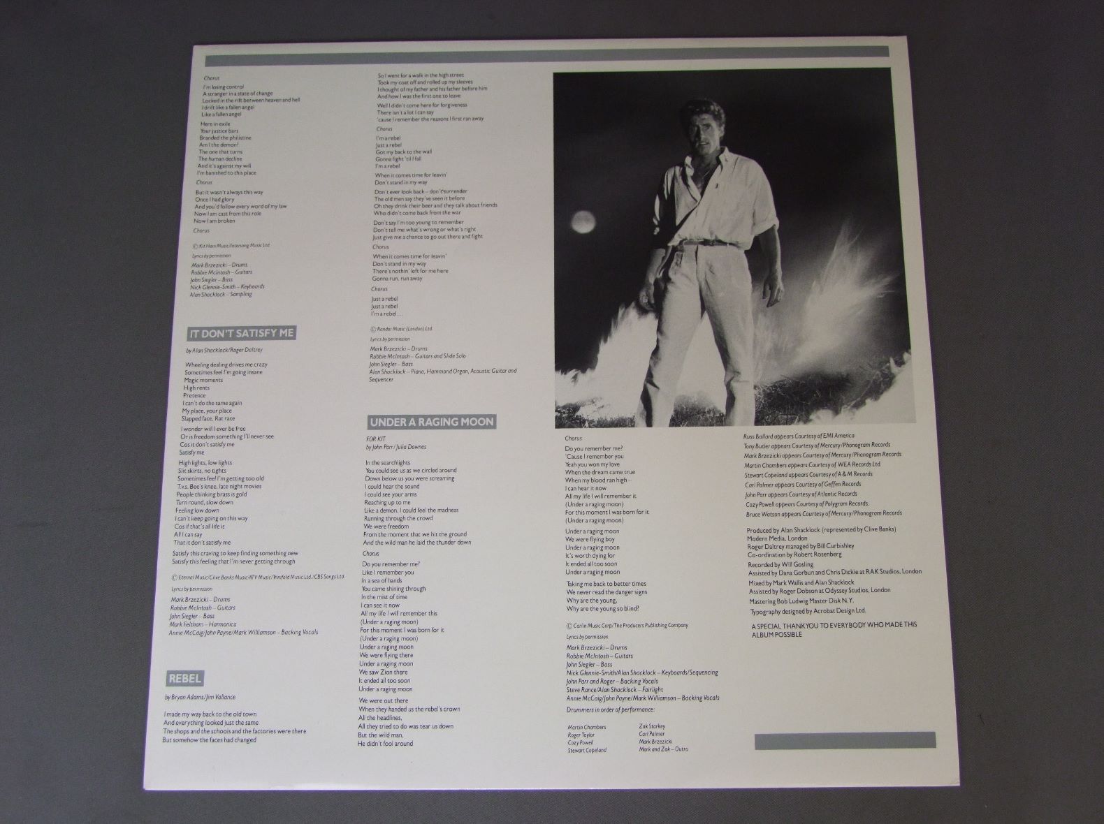 ROGER DALTREY/UNDER A RAGING MOON DIX17 製造国:英国盤 / Media:LP外観:EX+盤の状態:EX+ 価格(税込):¥880(売約済) 送料 7inch:定形外郵便 360円~LP:定形外郵便 660円~送料は、注文の最終画面で確認頂けます。 > > ROGER DALTREY/UNDER A RAGING MOON 外観 (EX+)特記事項:特記なし。外観EX+の共通説明:中古としては美品、一見してきれいでダメージが軽微。シミ、ヨゴレ、スレ有っても僅か~少し。 盤の状態 (EX+)特記事項:薄いスリキズ・スレ少し。一見してきれいな状態です。盤EX+の共通説明:盤面の極薄いスリキズ、スレ少し程度 音に出そうなものは無いように見える(極軽微なソフトティック音は除く)。 Tweet それぞれの画像をクリックすると、大きい写真が見られます こちらの商品もお勧めです 1,540円 ROGER DALTREY / UNDER A RAGING MOON 770円 PETE TOWNSHEND / WHITE CITY