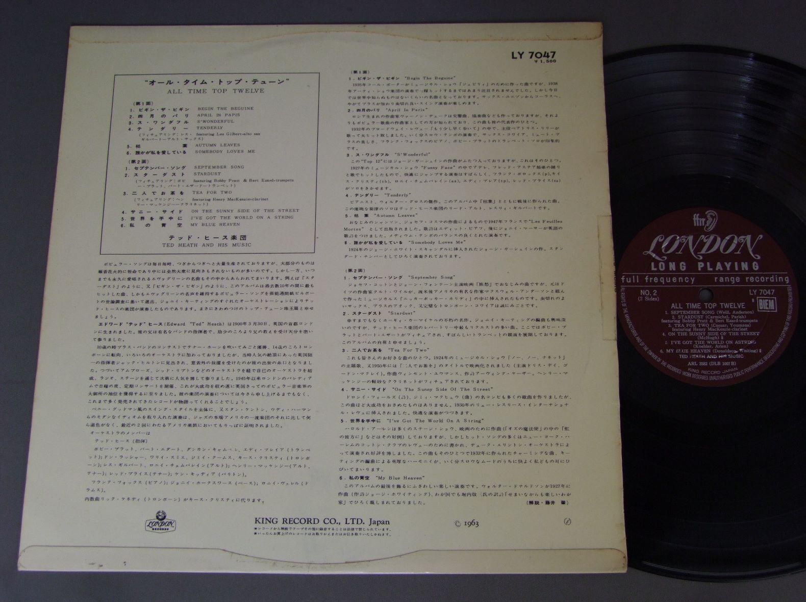 TED HEATH & HIS MUSICテッド・ヒース楽団/ALL TIME TOP TWELVEオール・タイム・トップ・ティーン LY7047 製造国:日本盤 / Media:LP外観:VG+盤の状態:EX 価格(税込):¥770(売約済) 送料 7inch:定形外郵便 360円~LP:定形外郵便 660円~送料は、注文の最終画面で確認頂けます。 > > TED HEATH & HIS MUSIC/ALL TIME TOP TWELVE 外観 (VG+)特記事項:背抜けにテープ補修。外観VG+の共通説明:ダメージやや有り。シミ、ヨゴレ、スレなど多少~やや多め。 盤の状態 (EX)特記事項:薄いスリキズ・スレ軽くある感じ。軽微なものの様子です。盤EXの共通説明:盤面のスリキズが薄いものが少し~軽度 音に出そうなものは無いように見える(軽微なソフトティック音は除く)。 Tweet それぞれの画像をクリックすると、大きい写真が見られます こちらの商品もお勧めです 770円 BUDDY GRECOバディ・グレコ / BIG BAND&BALLADSビッグ・バンド・アンド・バラード 880円 NEWPORT ALL STARSニューポート・オールスターズ / TRIBUTE TO DUKE ( LIVE IN BASEL SWISS 1969 OCT )デューク・エリントンに捧ぐ 1,210円 SONNY STITT WITH QUINCY JONES ORCHETRAソニー・スティット・クインシージョーンズ オーケストラ / SAME TITLE 440円 HERB ALPERT & TIJUANA BRASS / BRASS ARE COMIN` 1,320円 DON ELLIS ORCHESTRAドン・エリス楽団 / STUDY IN GREAT BIG BAND 20-LIVE AT MONTEREY !ライヴ・アット・モンタレー 990円 HERBIE MANNハービー・マン / HERBIE MANN VOL12ハービー・マン VOL12 880円 HERBIE MANNハービー・マン / EVOLUTION OF MANNハービー・マン・ストーリー 770円 CHICK COREAチック・コリア / PIANO IMPROVISATIONS VOL1チック・コリア・ソロ VOL1