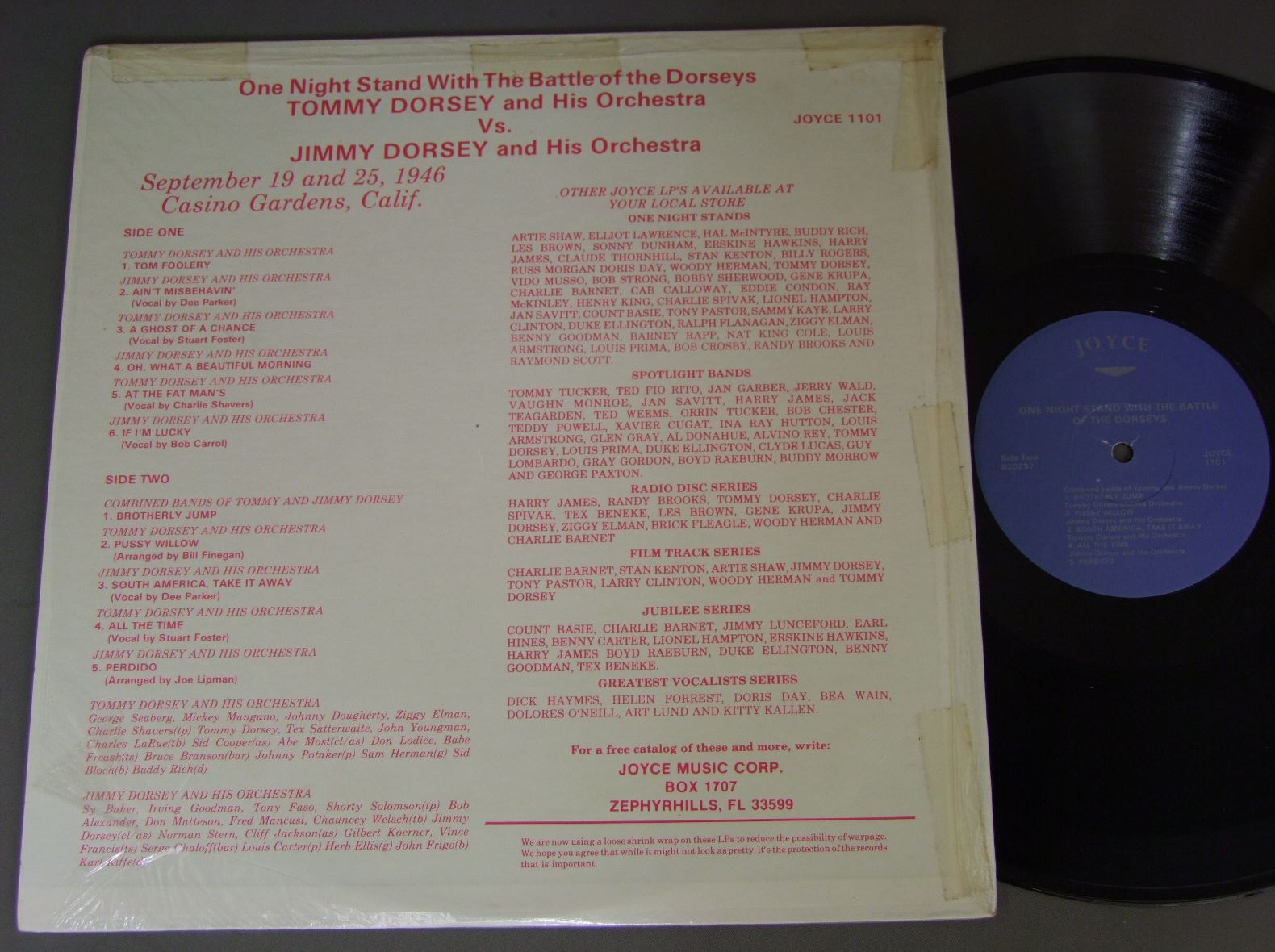 TOMMY DORSEY ORCHESTRA VS JIMMY DORSEY ORCHESTRA/ONE NIGHT STAND WITH THE BATTLE OF THE DORSEYS JOYCE 1101 製造国:米国盤 / Media:LP外観:EX+盤の状態:EX+ 価格(税込):¥550(売約済) 送料 7inch:定形外郵便 360円~LP:定形外郵便 660円~送料は、注文の最終画面で確認頂けます。 > > TOMMY DORSEY ORCHESTRA VS JIMMY DORSEY ORCHESTRA/ONE NIGHT STAND WITH THE BATTLE OF THE DORSEYS 外観 (EX+)特記事項:特記なし。外観EX+の共通説明:中古としては美品、一見してきれいでダメージが軽微。シミ、ヨゴレ、スレ有っても僅か~少し。 盤の状態 (EX+)特記事項:薄いスリキズ・スレ少し。一見してきれいな状態です。盤EX+の共通説明:盤面の極薄いスリキズ、スレ少し程度 音に出そうなものは無いように見える(極軽微なソフトティック音は除く)。 Tweet それぞれの画像をクリックすると、大きい写真が見られます こちらの商品もお勧めです 660円 SAMMY KAYE AND HIS ORCHESTRA / 22 ORIGINAL BIG BAND RECORDING 770円 LES BROWN & HIS BAND OF RENOWN / SWINGIN` SOUND 1,210円 MONTE BALLOU AND HIS NEW CASTLE JAZZ BAND / THEY`RE MOVING WILLIE`S GRAVE TO DIG A SEWER (BUTCH THOMPSON AUTOGRAPHED )THEY`RE MOVING WILLIE`S GRAVE TO DIG A SEWER(BUTCH THOMPSONサイン付) 770円 LIONEL HAMPTON / LIONEL HAMPTON&HIS BIG BAND `OUTRAGEOUS` 1,320円 YANK LAWSON AND BOB HAGGART / WORLD`S GREATEST JAZZ BAND 1,210円 JIMMY McPARTLAND - WILD BILL DAVISON etc / DIXIELAND AT CARNEGIE HALL 1,320円 LIONEL HAMPTON AND HIS GIANTS / LIVE IN EMMEN - HOLLAND 660円 DUKE ELLINGTON / EARLY DUKE ELLINGTON