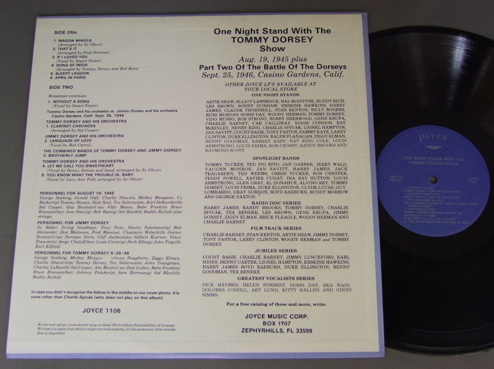 TOMMY DORSEY/TOMMY DORSEY SHOW 1945-46 JOYCE1106 製造国:米国盤 / Media:LP外観:EX盤の状態:EX+ 価格(税込):¥990(売約済) 送料 7inch:定形外郵便 360円~LP:定形外郵便 660円~送料は、注文の最終画面で確認頂けます。 > > TOMMY DORSEY/TOMMY DORSEY SHOW 1945-46 外観 (EX)特記事項:特記なし。外観EXの共通説明:ダメージが限定的。中古品としては保存状態がよい方。シミ、ヨゴレ、スレ 少し~軽度。 盤の状態 (EX+)特記事項:薄いスリキズ・スレ少し。一見してきれいな状態です。盤EX+の共通説明:盤面の極薄いスリキズ、スレ少し程度 音に出そうなものは無いように見える(極軽微なソフトティック音は除く)。 Tweet それぞれの画像をクリックすると、大きい写真が見られます こちらの商品もお勧めです 1,155円 BENNY GOODMAN / THE GREAT YEARS 770円 HARRY JAMES AND HIS ORCHESTRA / BEGINING 1,100円 HARRY JAMESハリー・ジェイムズ / ALL ABOUT HARRY JAMES 1,320円 YANK LAWSON AND BOB HAGGART / WORLD`S GREATEST JAZZ BAND 660円 DUKE ELLINGTON / EARLY DUKE ELLINGTON 660円 SAMMY KAYE AND HIS ORCHESTRA / 22 ORIGINAL BIG BAND RECORDING 770円 LIONEL HAMPTON / LIONEL HAMPTON RECORDED LIVE IN EMMEN-HOLLAND 770円 LIONEL HAMPTON / NEWPORT UPROAR