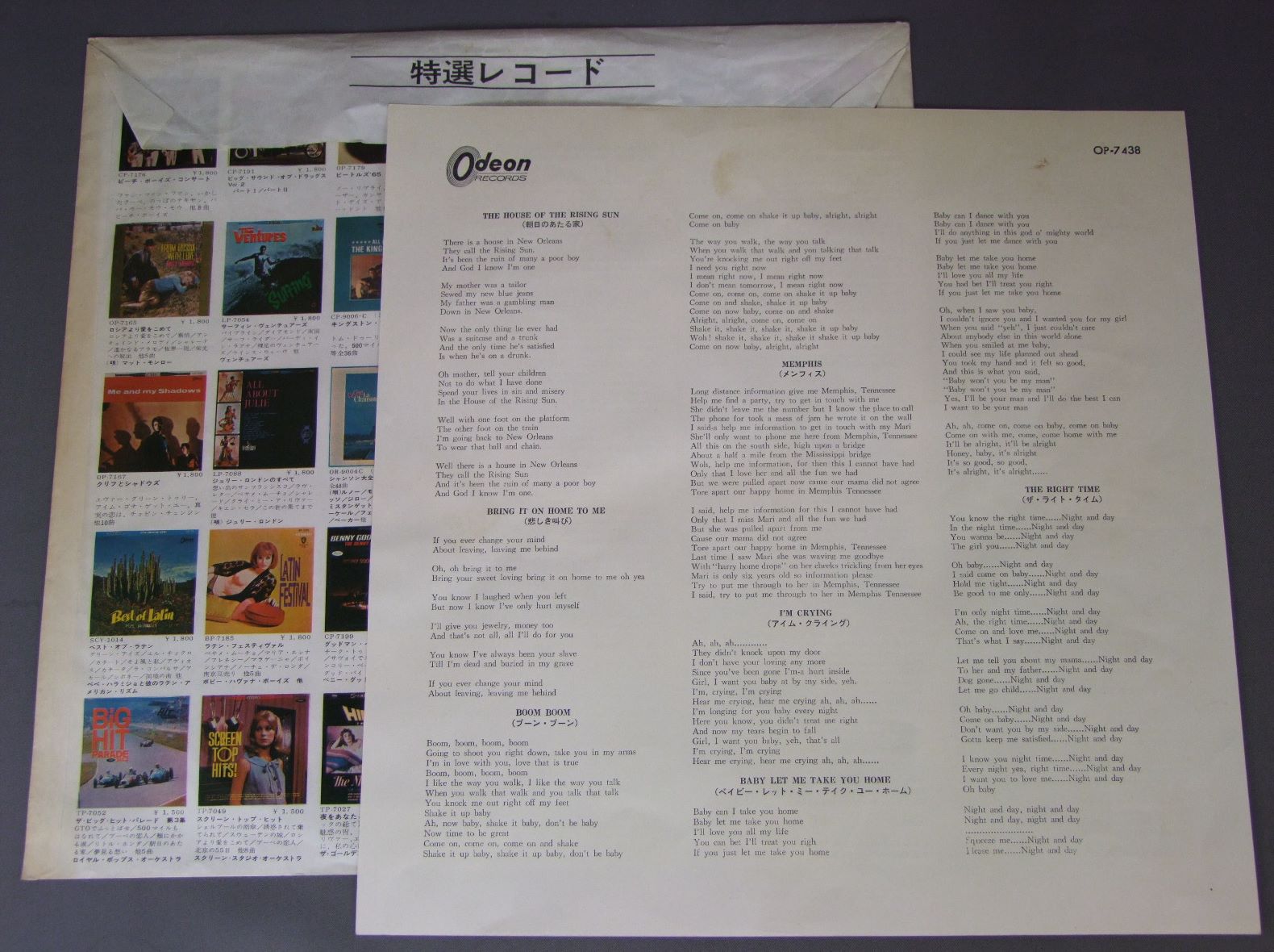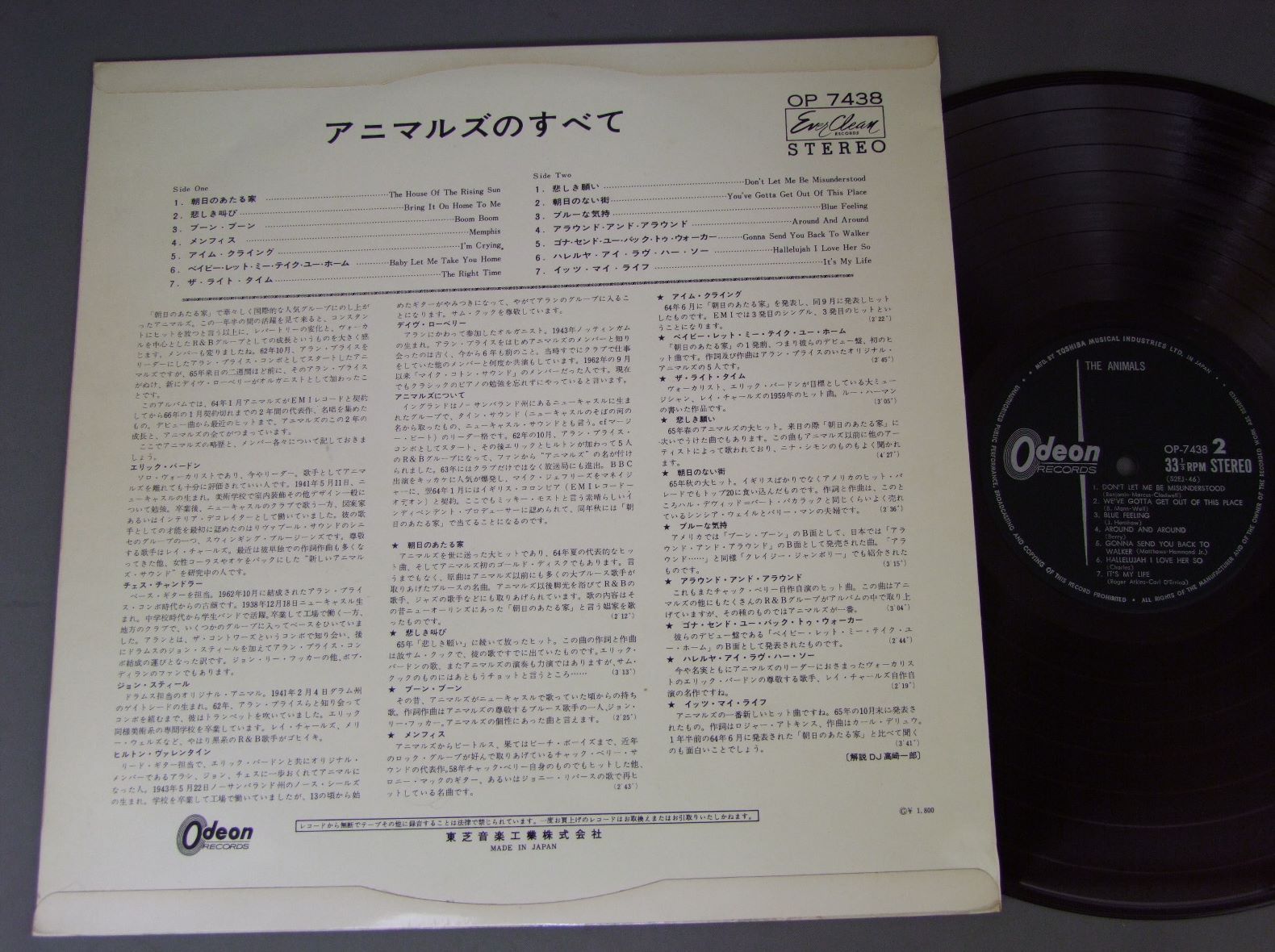 ANIMALS/ANIMALSアニマルズのすべて 赤盤 OP7438 製造国:日本盤 / Media:LP外観:EX盤の状態:EX 価格(税込):¥7,700(売約済) 送料 7inch:定形外郵便 360円~LP:定形外郵便 660円~送料は、注文の最終画面で確認頂けます。 > > ANIMALS/ANIMALS 外観 (EX)特記事項:特記なし。外観EXの共通説明:ダメージが限定的。中古品としては保存状態がよい方。シミ、ヨゴレ、スレ 少し~軽度。 盤の状態 (EX)特記事項:薄いスリキズ・スレ軽くある感じ。軽微なものの様子です。盤EXの共通説明:盤面のスリキズが薄いものが少し~軽度 音に出そうなものは無いように見える(軽微なソフトティック音は除く)。 Tweet それぞれの画像をクリックすると、大きい写真が見られます こちらの商品もお勧めです 4,950円 ANIMALSアニマルズ / BEST ALBUM アニマルズのすべて 赤盤 2,640円 SPOTNICKSスプートニクス / KARELIA-THE BEST OF THE SPOTNICKS霧のカレリア-ベスト・オブ・ザ・スプートニクス