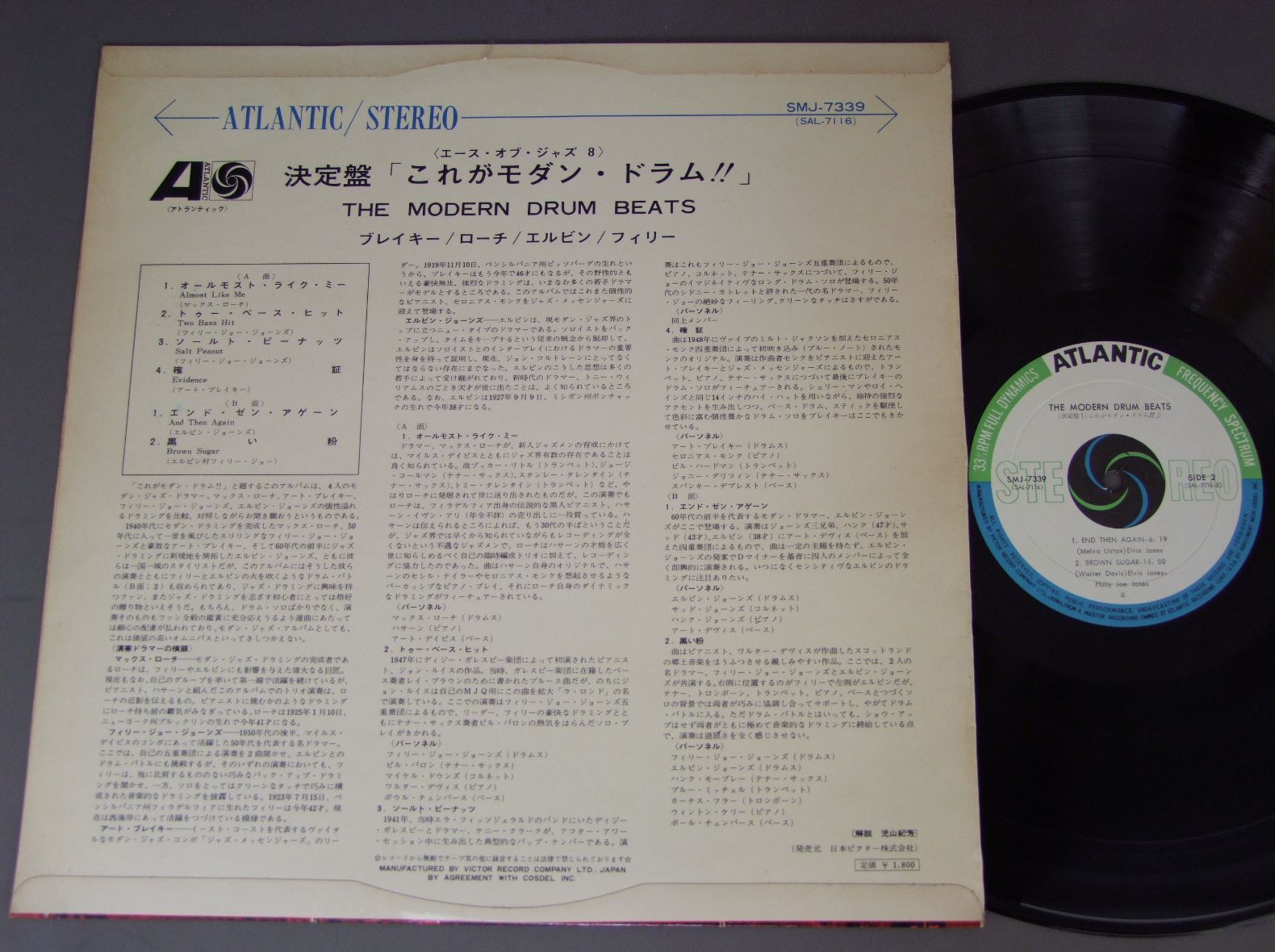 ART BLAKEY MAX ROACH etc/MODERN DRUM BEATS決定盤これがモダン・ドラム ペラジャケ SMJ7339 製造国:日本盤 / Media:LP外観:EX盤の状態:EX 価格(税込):¥1,650(売約済) 送料 7inch:定形外郵便 360円~LP:定形外郵便 660円~送料は、注文の最終画面で確認頂けます。 > > ART BLAKEY MAX ROACH etc/MODERN DRUM BEATS 外観 (EX)特記事項:レコード取り出し口側に日焼け感有り。外観EXの共通説明:ダメージが限定的。中古品としては保存状態がよい方。シミ、ヨゴレ、スレ 少し~軽度。 盤の状態 (EX)特記事項:薄いスリキズ・スレ少しある感じ。一見してきれいな感じです。盤EXの共通説明:盤面のスリキズが薄いものが少し~軽度 音に出そうなものは無いように見える(軽微なソフトティック音は除く)。 Tweet それぞれの画像をクリックすると、大きい写真が見られます こちらの商品もお勧めです 1,210円 FLETCHER HENDERSON & HIS ORCHESTRAフレッチャー・ヘンダーソン / FIRST IMPRESSIONS VOL1 (1924-1931)ファースト・インプレッションズ VOL1 (1924-1931) 1,210円 MODERN JAZZ QUARTETMJQ / ART OF THE MODERN JAZZ QUARTETアート・オブ・MJQ 1,210円 OSCAR PETERSONオスカー・ピーターソン / BLUES ETUDEジャズ・ピアノの真髄 990円 CHARLIE PARKERチャーリー・パーカー / CHARLIE PARKER ON SAVOY VOL4チャーリー・パーカー・オン・サヴォイVOL4 660円 QUINCY JONES & BANDクインシー・ジョーンズ / I DIG DANCERSアイ・ディグ・ダンサーズ 1,320円 MONTY ALEXANDER TRIOモンティ・アレキサンダー / MONTREUX ALEXANDERアット・モントルー 770円 JACQUES LOUSSIER TRIO - ROYAL PHIL. ORCH.ジャック・ルーシェ・トリオ - ロイヤル・フィルハーモニー管弦楽団 / BACH - BRANDENBURG NO5バッハ - ブランデンブルグ協奏曲第5番 1,210円 CLARKE BOLAND BIG BAND / SAME TITEL