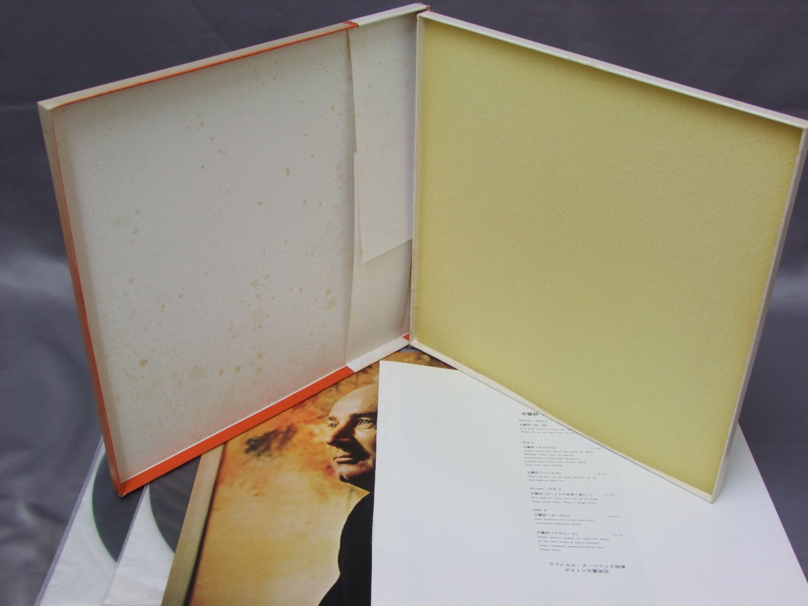 KUBELIK BSOクーベリック/SMETANA・MA VLASTスメタナ/交響詩わが祖国 MG9580/1 製造国:日本盤 / Media:LP外観:VG+盤の状態:EX+ 価格(税込):¥1,100(売約済) 送料 7inch:定形外郵便 360円~LP:定形外郵便 660円~送料は、注文の最終画面で確認頂けます。 > > KUBELIK BSO/SMETANA・MA VLAST 外観 (VG+)特記事項:背や上ヘリに日焼けやよごれ。箱表面にシミが少し。箱中にシミ。ブックレットにシミ有り。外観VG+の共通説明:ダメージやや有り。シミ、ヨゴレ、スレなど多少~やや多め。 盤の状態 (EX+)特記事項:薄いスリキズ・スレ少し。一見してきれいな状態です。盤EX+の共通説明:盤面の極薄いスリキズ、スレ少し程度 音に出そうなものは無いように見える(極軽微なソフトティック音は除く)。 帯の状態 ():EX- Tweet それぞれの画像をクリックすると、大きい写真が見られます こちらの商品もお勧めです 990円 KARAJAN - BERLINER PHILHARMONIKERカラヤン - ベルリンフィルハーモニー管弦楽団 / RICHARD STRAUSS - ALSO SPRACH ZARATHISUTRAR.シュトラウス - 交響詩‘ツァラトゥストラはかく語り` 990円 CLIBURN-ORMANDYクライバーン-オーマンディ / GRIEG-CONC.-LISZT-CONC. NO1グリーク-ピアノ協奏曲 -リスト-ピアノ協奏曲 第1番 1,320円 ANSERMET - L`ORCHESTRE DE LA SUISSE ROMANDEアンセルメ - スイス・ロマンド管弦楽団 / MA MER L`OYEマ・メール・ロワ 1,210円 POLLINI - ABBADO - CHICAGO SYM. ORCH.ポリーニ - アバド - シカゴ交響楽団 / BARTOK - PIANO CONC. 1 & 2バルトーク - ピアノ協奏曲第1番2番 990円 KEMPFFウイルヘルム・ケンプ / BEETHOVEN`S PIANO SONATAS NO3-NO4ベートーヴェン-ピアノ奏鳴曲 第三番-第四番 770円 KNAPPERTSBUSH - VIENNA PHILHARMONIC ORCHESTRAクナッパーツブッシュ - ウィーンフィルハーモニー管弦楽団 / KNAPPERTSBUSH CONDUCTS WAGNERワーグナー名曲集 990円 CARL SCHURICHTカール・シューリヒト / ROMANTIC OVERTURESロマン派名序曲集 990円 RICHTERスヴィアトスラフ・リヒテル / TCHAIKOVSKY PIANO CONC. NO1チャイコフスキー ピアノ協奏曲第1番