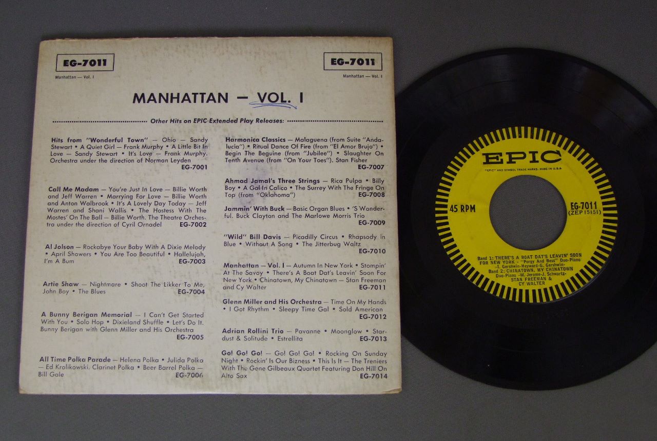 STAN FREEMAN & CY WALTER/MANHATTAN VOLUME 1 EG7011 製造国:米国盤 / Media:7inch外観:EX-盤の状態:EX- 価格(税込):¥880(売約済) 送料 7inch:定形外郵便 360円~LP:定形外郵便 660円~送料は、注文の最終画面で確認頂けます。 > > STAN FREEMAN & CY WALTER/MANHATTAN VOLUME 1 外観 (EX-)特記事項:上ヘリにスレ。レコード取り出し口上に割れ。外観EX-の共通説明:ダメージ軽度~多少。 中古品としては普通の状態。シミ、ヨゴレ、スレなど軽く~多少。 盤の状態 (EX-)特記事項:薄いスリキズ・細かい表面スレ軽くある感じ。全体的には殆どが軽微なものの様子です。盤EX-の共通説明:盤面のスリキズが多少有り。音に出そうなものは殆ど無いように見える~さほど気にならないぐらいの軽いプチ数カ所程度。 Tweet それぞれの画像をクリックすると、大きい写真が見られます こちらの商品もお勧めです 770円 DON COSTA / MODERN DELIGHTS 550円 DOWN TOWN JAZZ BAND / DIXIELAND FESTIVAL 1,320円 DOC EVANS / CURE FOR THE BLUES 770円 BERT LIGON / CONDOR 770円 MICHEL LEGRANDミッシェル・ルグラン / I LOVE PARIS 1,650円 RALPH SUTTON & RAFFAELE BORRETTI / COSENZA JAZZ WORKSHOP AUTOGRAPHEDCOSENZA JAZZ WORKSHOP サイン付 990円 JOE HOWARD TRIO / JAZZ.HIGHWAY 20 440円 JOHNNY GUARNIERI / JOHNNY GUARNIERI REMEMBERED