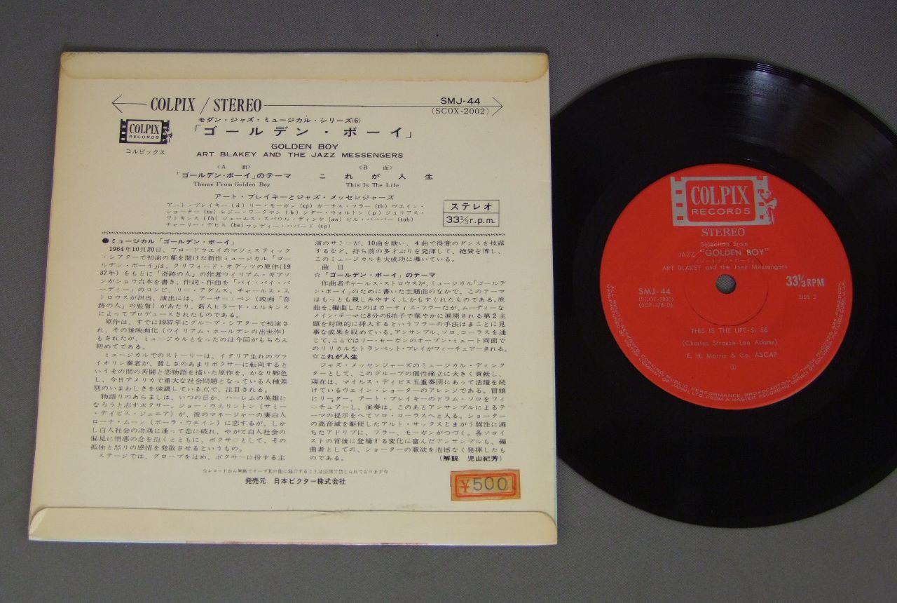 ART BLAKEY AND THE JAZZ MESSENGERSアート・ブレイキーとジャズ・メッセンジャーズ/MUSICAL GOLDEN BOYゴールデン・ボーイ SMJ44 製造国:日本盤 / Media:7inch外観:EX盤の状態:EX 価格(税込):¥550(売約済) 送料 7inch:定形外郵便 360円~LP:定形外郵便 660円~送料は、注文の最終画面で確認頂けます。 > > ART BLAKEY AND THE JAZZ MESSENGERS/MUSICAL GOLDEN BOY 外観 (EX)特記事項:ジャケ表面にシミ有。外観EXの共通説明:ダメージが限定的。中古品としては保存状態がよい方。シミ、ヨゴレ、スレ 少し~軽度。 盤の状態 (EX)特記事項:薄いスリキズ・スレ少しある感じ。一見してきれいな感じです。盤EXの共通説明:盤面のスリキズが薄いものが少し~軽度 音に出そうなものは無いように見える(軽微なソフトティック音は除く)。 Tweet それぞれの画像をクリックすると、大きい写真が見られます こちらの商品もお勧めです 770円 BRUBECK & LAVERNE TRIO / SEE HOW IT FEELS想いのままに 660円 CAL TJADERカル・ジェイダー / SHINING SEAシャイニング・シー 770円 SINGERS UNLIMITEDシンガーズ・アンリミテッド / CAPELLAア・カペラ 1,320円 LOUIS ARMSTRONG & HIS ALL-STARSルイ・アームストロング・オールスターズ / PLAYS W.C.HANDYプレイズ・W.C.ハンディ 662円 FRANCOIS GLORIEUXグロリュー / PLAYS THE BEATLESビートルズを弾く 1,210円 FLETCHER HENDERSON & HIS ORCHESTRAフレッチャー・ヘンダーソン / FIRST IMPRESSIONS VOL1 (1924-1931)ファースト・インプレッションズ VOL1 (1924-1931) 1,320円 JACKIE McLEAN QUINTETジャッキー・マクリーン・クインテット / JACKIE McLEAN QUINTETJACIE McLEAN QUINTET 770円 ANDREAS VOLLENWEIDERアンドレアス・フォーレンヴァイダー / WHITE WINDSホワイト・ウィンズ