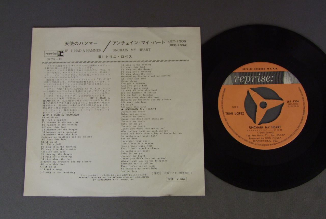 TRINI LOPEZトリニ・ロペス/IF I HAD A HAMMER天使のハンマー JET1306 製造国:日本盤 / Media:7inch外観:EX盤の状態:EX+ 価格(税込):¥550(売約済) 送料 7inch:定形外郵便 360円~LP:定形外郵便 660円~送料は、注文の最終画面で確認頂けます。 > > TRINI LOPEZ/IF I HAD A HAMMER 外観 (EX)特記事項:多少ヨレ有り。外観EXの共通説明:ダメージが限定的。中古品としては保存状態がよい方。シミ、ヨゴレ、スレ 少し~軽度。 盤の状態 (EX+)特記事項:薄いスリキズ・スレ少し。一見してきれいな状態です。盤EX+の共通説明:盤面の極薄いスリキズ、スレ少し程度 音に出そうなものは無いように見える(極軽微なソフトティック音は除く)。 Tweet それぞれの画像をクリックすると、大きい写真が見られます こちらの商品もお勧めです 770円 CHARLES AZNAVOURシャルル・アズナヴール / LA MAMMAラ・マンマ 880円 RUPERT HOLMESルパート・ホルムズ / ADVENTUREアドヴェンチャー 770円 DAN FOGELBERGダン・フォーゲルバーグ / PHOENIXフェニックス 1,320円 JONNY RIVERSジョニー・リバース / MISTER GO ! GO ! 60s ISSUEミスター・ゴー・ゴー ペラジャケ 990円 GLENN FREYグレン・フライ / ALLNIGHTER 660円 ERIC CARMENエリック・カルメン / TONIGHT YOU`RE MINEトゥナイト・ユー・アー・マイン 662円 RICK SPRINGFIELDリック・スプリングフィールド / SUCCESS HASN`T SPOILED ME YETアメリカン・ガール 1,210円 ADAMOアダモ / ALL ABOUT ADAMO DELUXE DOUBLEデラックス・ダブル アダモのすべて
