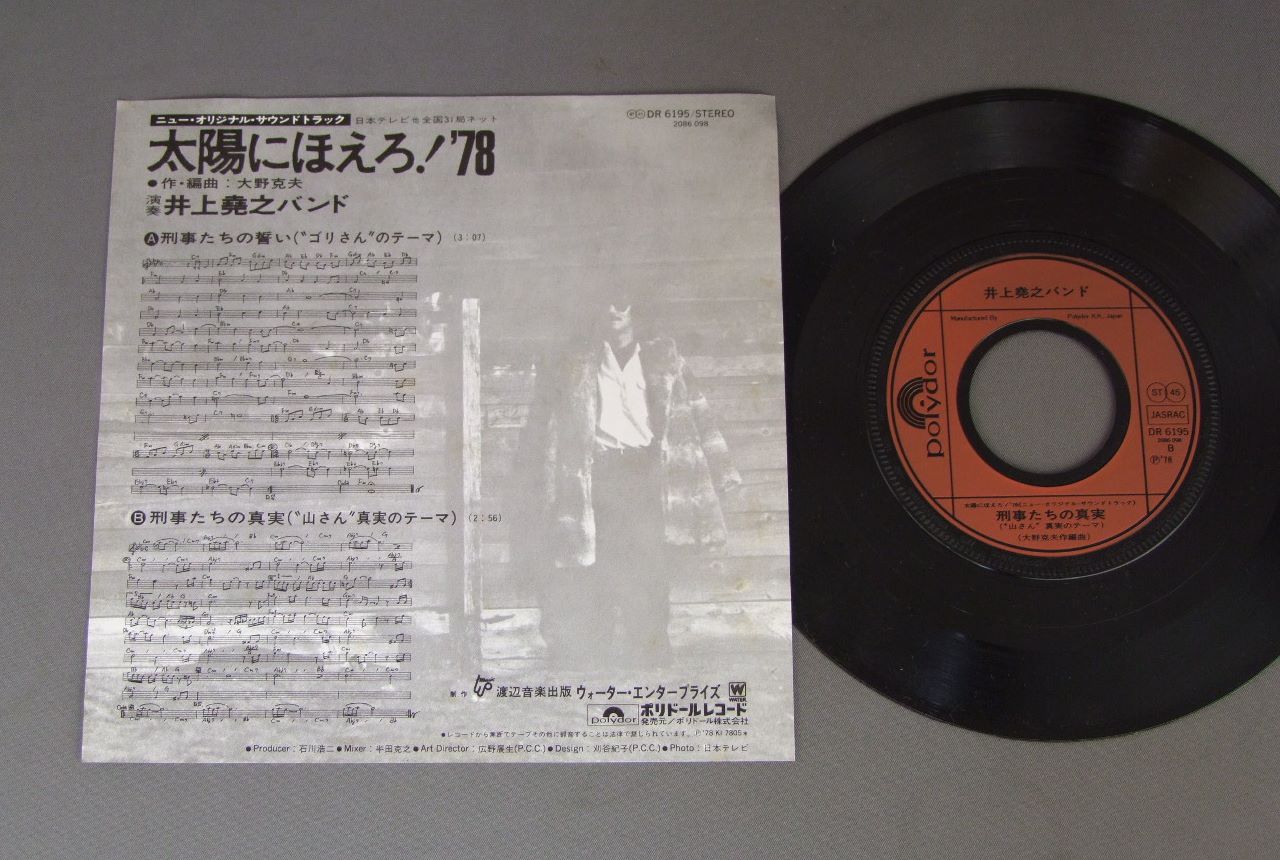 TAKAYUKI INOUE井上堯之バンド/太陽にほえろ78 DR6195 製造国:日本盤 / Media:7inch外観:EX盤の状態:EX+ 価格(税込):¥550(売約済) 送料 7inch:定形外郵便 360円~LP:定形外郵便 660円~送料は、注文の最終画面で確認頂けます。 > > TAKAYUKI INOUE/ 外観 (EX)特記事項:特記なし。外観EXの共通説明:ダメージが限定的。中古品としては保存状態がよい方。シミ、ヨゴレ、スレ 少し~軽度。 盤の状態 (EX+)特記事項:薄いスリキズ・スレ少し。一見してきれいな状態です。盤EX+の共通説明:盤面の極薄いスリキズ、スレ少し程度 音に出そうなものは無いように見える(極軽微なソフトティック音は除く)。 Tweet それぞれの画像をクリックすると、大きい写真が見られます こちらの商品もお勧めです 550円 BURT BACHARACHバート・バカラック / SOUNDTRACK ARTHUR映画 ミスター・アーサー 1,320円 MORTON GOULDモートン・グールド / SOUND TRACK HOLOCAUST映画ホロコースト 1,320円 IRWIN ALLENアーウィン・アレン作品 / TOWERING INFERNO映画タワーリング・インフェルノ 1,320円 無声映画鑑賞会 / おお活動大写真 2,530円 M.DIETRCH-L. HARVEY etcマレーネ・ディートリッヒ-リリアン・ハーヴェイ 他 / EUROPEAN CINEMA MUSIC OF GOLDEN AGE + POSTERSオリジナル盤による戦前欧羅巴映画主題歌集 ドイツ篇-フランス篇 ポスター付 880円 TV SOUND TRACK2大刑事ドラマ / ORETACHINO KUNSHO俺たちの勲章-太陽にほえろ ! テレビ主題曲集 1,210円 PETER OTOOLE % SOPHIA LORENピーター・オトール&ソフィア・ローレン / SOUNDTRACK MAN OF LA MANCHA映画 ラ・マンチャの男 660円 RALPH BURNSラルフ・バーンズ / SOUND TRACK ALL THAT JAZZ映画オール・ザット・ジャズ