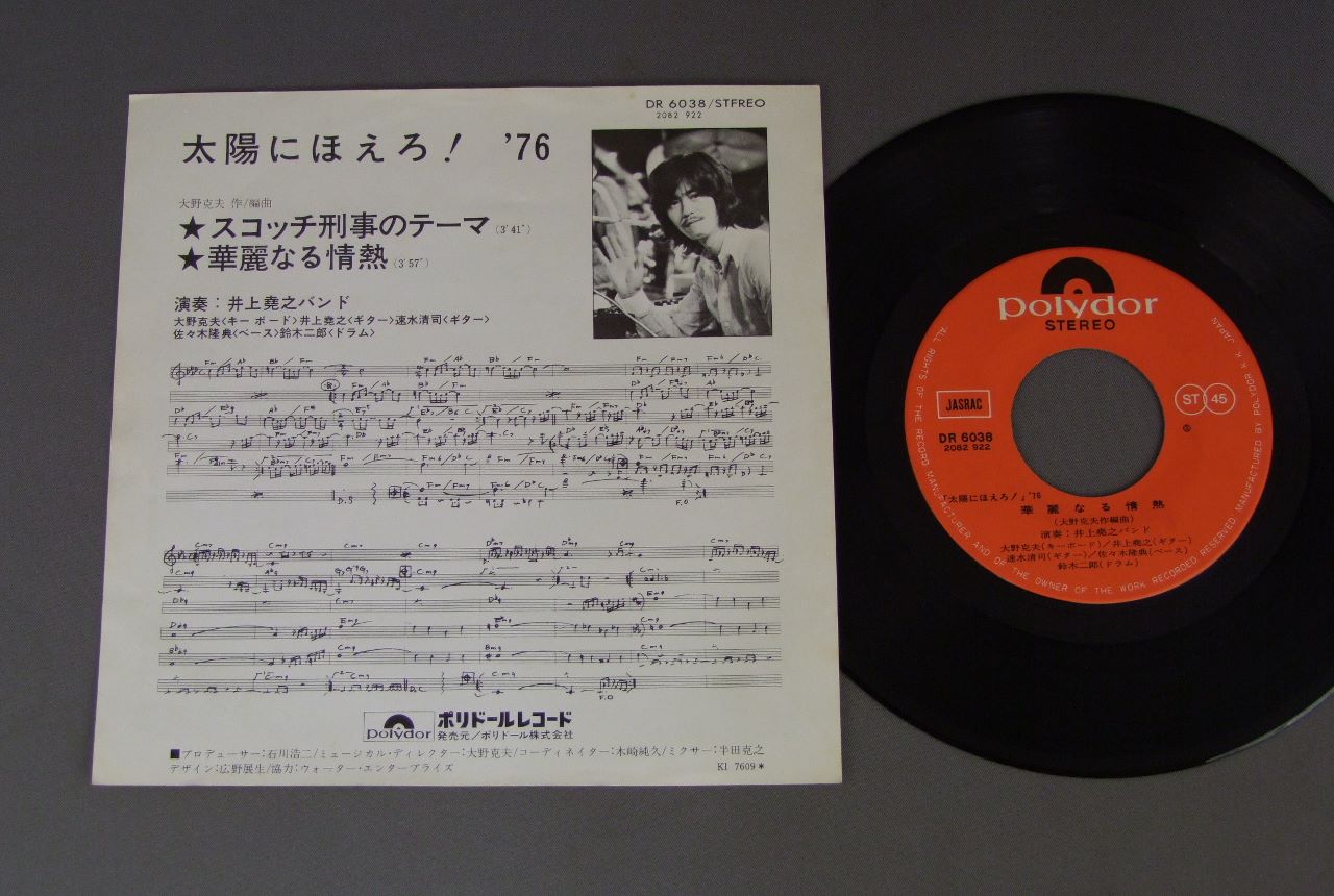 TAKAYUKI INOUE井上堯之バンド/太陽にほえろ76 DR6038 製造国:日本盤 / Media:7inch外観:EX盤の状態:EX+ 価格(税込):¥550(売約済) 送料 7inch:定形外郵便 360円~LP:定形外郵便 660円~送料は、注文の最終画面で確認頂けます。 > > TAKAYUKI INOUE/ 外観 (EX)特記事項:特記なし。外観EXの共通説明:ダメージが限定的。中古品としては保存状態がよい方。シミ、ヨゴレ、スレ 少し~軽度。 盤の状態 (EX+)特記事項:薄いスリキズ・スレ少し。一見してきれいな状態です。盤EX+の共通説明:盤面の極薄いスリキズ、スレ少し程度 音に出そうなものは無いように見える(極軽微なソフトティック音は除く)。 Tweet それぞれの画像をクリックすると、大きい写真が見られます こちらの商品もお勧めです 1,320円 IRWIN ALLENアーウィン・アレン作品 / TOWERING INFERNO映画タワーリング・インフェルノ 990円 OLIVIA NEWTON-JOHN etcオリビア・ニュートンジョン他 / TWO OF A KINDサントラ・セカンド・チャンス 1,210円 PETER OTOOLE % SOPHIA LORENピーター・オトール&ソフィア・ローレン / SOUNDTRACK MAN OF LA MANCHA映画 ラ・マンチャの男 880円 平尾昌晃 水谷豊 / ドラマ 熱中時代-主演・水谷豊 770円 VANGELISヴァンゲリス / CHARIOTS OF FIREチャリオッツ・オブ・ファイアー 770円 JOHN ADDISONジョン・アディスン監督 / SOUNDTRACK BRIDGE TOO FAR映画 遠すぎた橋 1,210円 JOHN BARRYジョン・バリー / 10th ANNIVERSARY JAMES BOND ALBUM映画007 スーパー・パック 990円 ORIGINAL SOUND TRACKオリジナル・サウンド・トラック / CHITTY CHITTY BANG BANGチキ・チキ・バン・バン