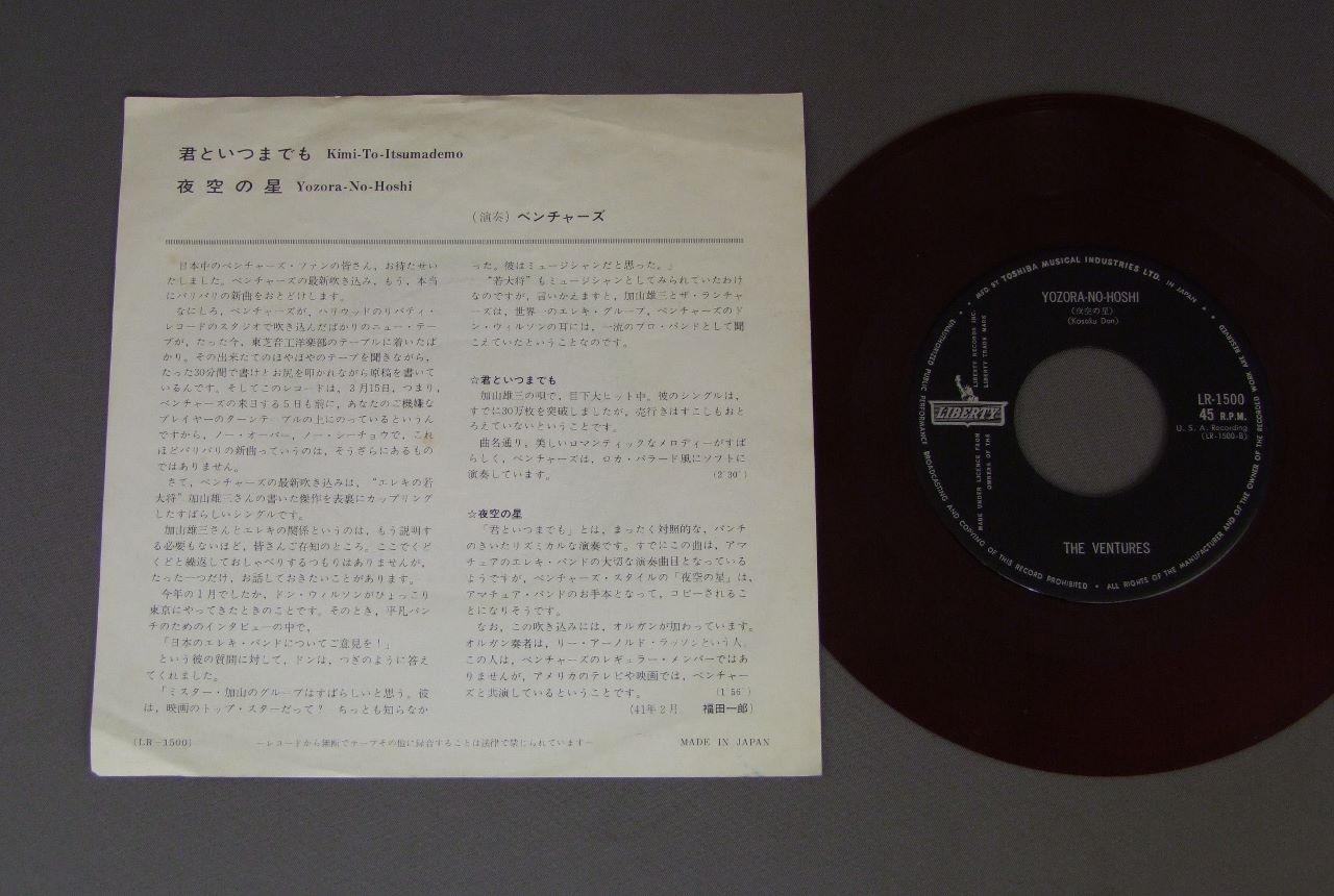 VENTURESベンチャーズ/KIMI-TO ITSUMADEMO君といつまでも 赤盤 LR1500 製造国:日本盤 / Media:7inch外観:EX-盤の状態:EX 価格(税込):¥880(売約済) 送料 7inch:定形外郵便 360円~LP:定形外郵便 660円~送料は、注文の最終画面で確認頂けます。 > > VENTURES/KIMI-TO ITSUMADEMO 外観 (EX-)特記事項:ヨレ多少有り。外観EX-の共通説明:ダメージ軽度~多少。 中古品としては普通の状態。シミ、ヨゴレ、スレなど軽く~多少。 盤の状態 (EX)特記事項:薄いスリキズ・スレ少しある感じ。一見してきれいな感じです。盤EXの共通説明:盤面のスリキズが薄いものが少し~軽度 音に出そうなものは無いように見える(軽微なソフトティック音は除く)。 Tweet それぞれの画像をクリックすると、大きい写真が見られます こちらの商品もお勧めです 440円 VENTURESベンチャーズ / POPS IN JAPANポップス・イン・ジャパン 1,650円 ELVIS PLESLEYエルヴィス.プレスリー / ELVIS-THAT`S THE WAY IT ISエルヴィス.オン・ステージVOL.1 990円 VENTURESベンチャーズ / IN CHRISTMASイン・クリスマス 880円 VENTURESベンチャーズ / JOYジョイ -ディスカバー・クラシック- 1,210円 ELVIS PRESLEY / ELVIS AS RECORDED AT MADISON SQUARE GARDENエルヴィス・イン・ニューヨーク 990円 VENTURESベンチャーズ / ON STAGE ENCOREオン・ステージ・アンコール 990円 RICK NELSONリック・ネルソン / ALBUM SEVEN BY RICKアルバム・セブン・バイ・リック 1,320円 VENTURESベンチャーズ / VENTURES A GO GOベンチャーズ・ア・ゴー・ゴー