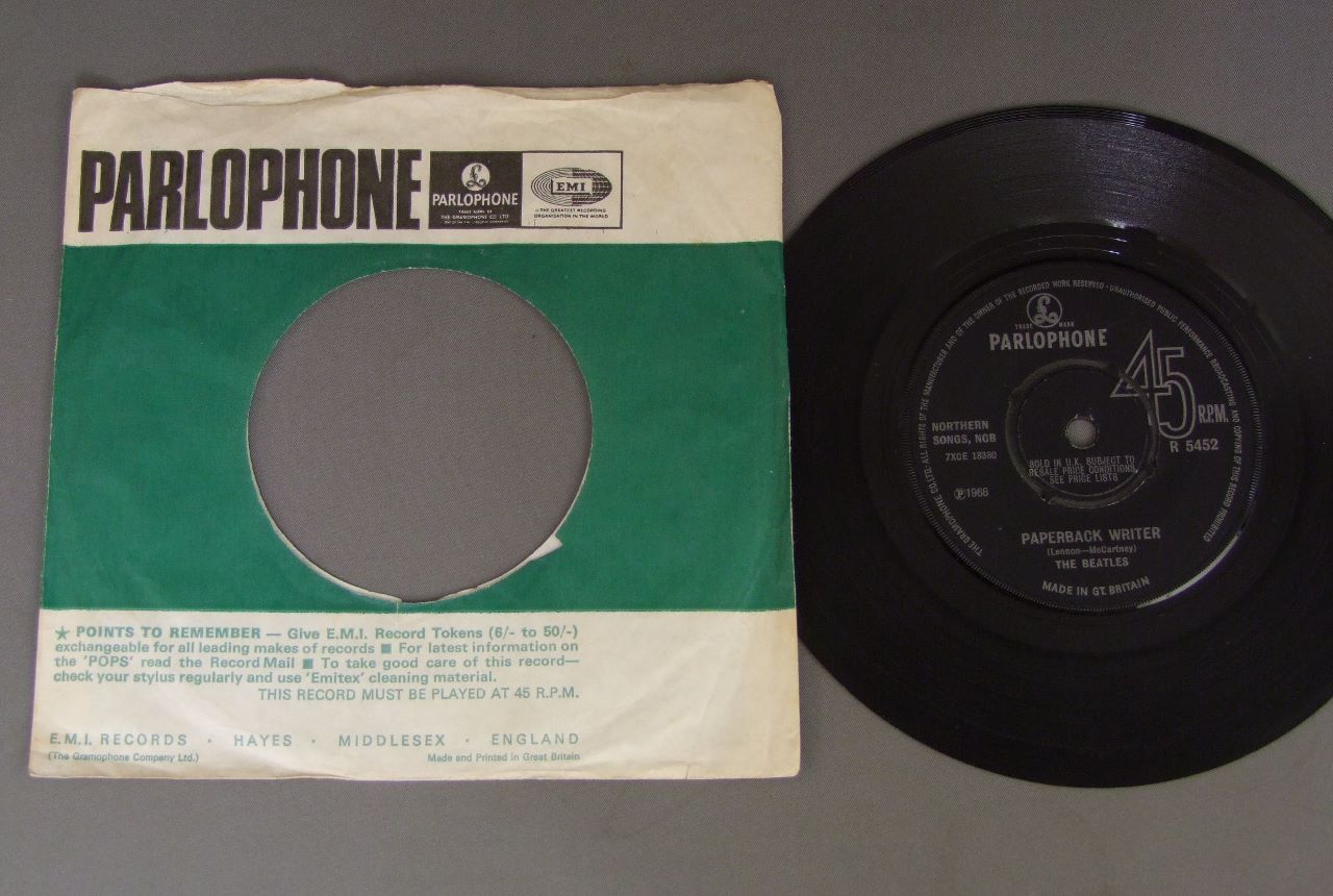 BEATLES/PAPERBACK WRITER R5452 製造国:英国盤 / Media:7inchMatrix: -2/?/JH | -2/?/DGJ外観:EX-盤の状態:EX- 価格(税込):¥7,700(売約済) 送料 7inch:定形外郵便 360円~LP:定形外郵便 660円~送料は、注文の最終画面で確認頂けます。 > > BEATLES/PAPERBACK WRITER 外観 (EX-)特記事項:PARLOPHONE社のカンパニースリーブ付き。多少ヨレ有りますが、全体的にしっかりした感じ。抜けは無いです。外観EX-の共通説明:ダメージ軽度~多少。 中古品としては普通の状態。シミ、ヨゴレ、スレなど軽く~多少。 盤の状態 (EX-)特記事項:薄いスリキズ・スレ軽くある感じ。ほとんどが軽微なものの様子です。曲間など、静かなところを中心にモノ針で聴いて見ましたが、この盤によくある軽い歪みっぽさと、迫力のあるベースの音が特徴的。チリプチ軽度で音もしっかり鳴っていました。盤EX-の共通説明:盤面のスリキズが多少有り。音に出そうなものは殆ど無いように見える~さほど気にならないぐらいの軽いプチ数カ所程度。 Tweet それぞれの画像をクリックすると、大きい写真が見られます こちらの商品もお勧めです 4,950円 JOHN & YOKO - PLASTIC ONO BANDF / SOME TIME IN NEW YORK CITY 5,500円 BEATLES / AT THE HOLLYWOOD BOWL 5,500円 JOHN LENNON / SHAVED FISH 5,500円 GEORGE HARRISON / LIVING IN THE MATERIAL WORLD 5,500円 GEORGE HARRISON / THIRTY THREE & 1/3