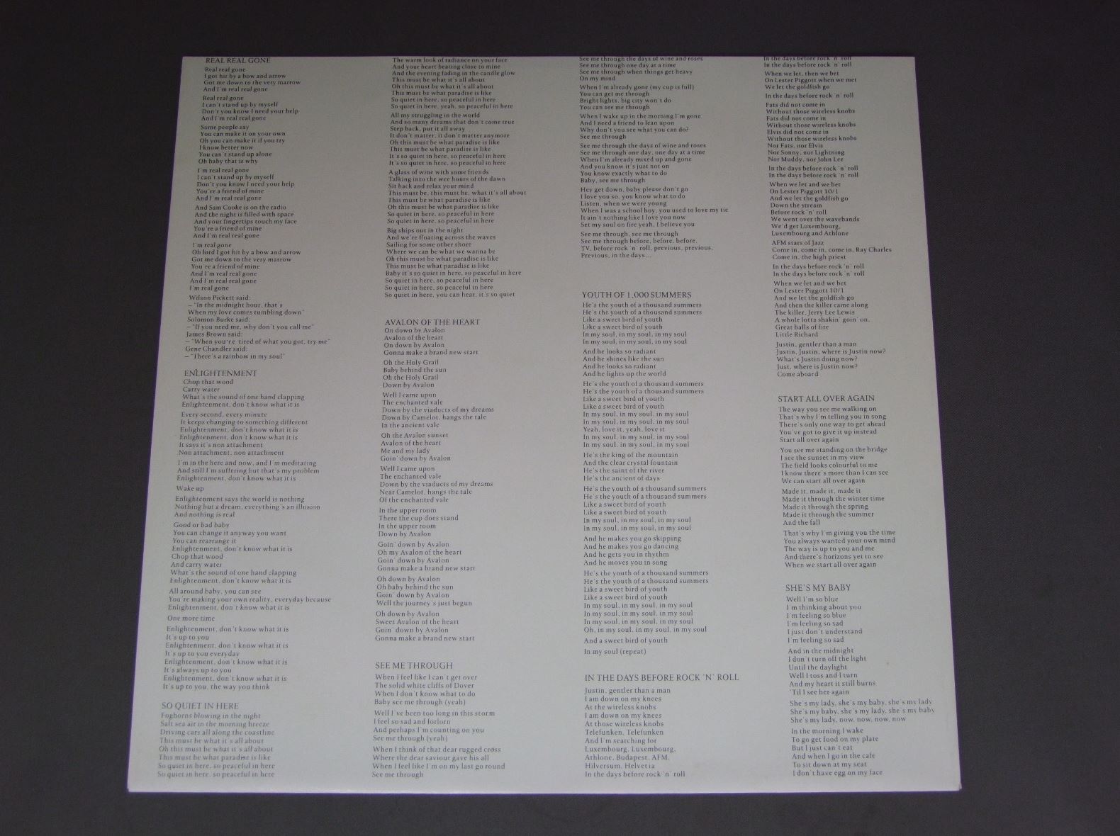 VAN MORRISON/ENLIGHTENMENT 847 100-1 製造国:英国盤 / Media:LPMatrix:A-1U-1-2 | B-1U-1-3外観:EX+盤の状態:EX- 価格(税込):¥3,300(売約済) 送料 7inch:定形外郵便 360円~LP:定形外郵便 660円~送料は、注文の最終画面で確認頂けます。 > > VAN MORRISON/ENLIGHTENMENT 外観 (EX+)特記事項:ジャケ表面は全体的にスレやスリキズ、よごれ等は少ない感じ。オリジナルインナーもきれいな状態。鵺もないです。外観EX+の共通説明:中古としては美品、一見してきれいでダメージが軽微。シミ、ヨゴレ、スレ有っても僅か~少し。 盤の状態 (EX-)特記事項:薄いスリキズ・スレ軽くある感じ。ほとんどが軽微なものの様子です。曲間など、静かなところを中心に聴いて見ましたが、チリプチ軽度で音もしっかり鳴っていました。盤EX-の共通説明:盤面のスリキズが多少有り。音に出そうなものは殆ど無いように見える~さほど気にならないぐらいの軽いプチ数カ所程度。 Tweet それぞれの画像をクリックすると、大きい写真が見られます こちらの商品もお勧めです 6,600円 CLIFF RICHARD / DON`T STOP ME NOW 4,400円 ROGER GLOVER / MASK 3,850円 VAN MORRISON / PERIOD OF TRANSITION 3,300円 HARRY NILSSON / LITTLE TOUCH OF SCHMILSSON 4,400円 GEORGIE FAME / GEORGIE DOES HIS THING WITH STRINGS 3,300円 CLIFF RICHARD / CLIFF`S HIT ALBUM 5,500円 JIM WEBB / SINGS JIM WEBB 6,600円 RORY GALLAGHER / BLUE PRINT初回LBL