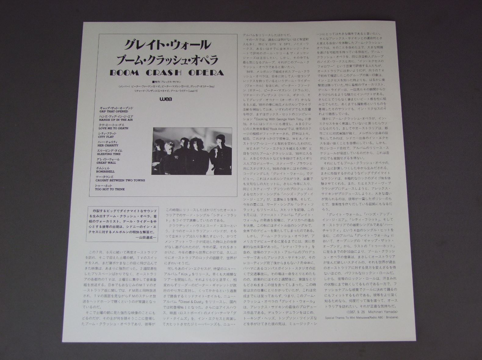 BOOM CRASH OPERAブーム・クラッシュ・オペラ/グレイト・ウォール P13581 製造国:日本盤 / Media:LP外観:EX盤の状態:EX+帯:EX- 価格(税込):¥1,100(売約済) 送料 7inch:定形外郵便 360円~LP:定形外郵便 660円~送料は、注文の最終画面で確認頂けます。 > > BOOM CRASH OPERA/ 外観 (EX)特記事項:ジャケ表面にシミ、よごれ有、スレ有。外観EXの共通説明:ダメージが限定的。中古品としては保存状態がよい方。シミ、ヨゴレ、スレ 少し~軽度。 盤の状態 (EX+)特記事項:薄いスリキズ・スレ少し。一見してきれいな状態です。盤EX+の共通説明:盤面の極薄いスリキズ、スレ少し程度 音に出そうなものは無いように見える(極軽微なソフトティック音は除く)。 帯の状態 (EX-):切れ、やぶれ有。 Tweet それぞれの画像をクリックすると、大きい写真が見られます こちらの商品もお勧めです 770円 TAZMANIAN DEVILSタズマニアン・デヴィルズ / アメリカン・ドリームを探して 770円 CHEAP TRICKチープ・トリック / HEAVEN TONIGHT天国の罠(トリック) 660円 CULTURE CLUBカルチャー・クラブ / KISSING TO BE CLEVER 1,210円 OXOオクソ / 1st ALBUMオクソ 770円 CULTUTE CLUB / HOUSE ON FIRE 1,320円 CLASSIX NOUVEAUXクラシックス・ヌヴォー / NIGHT PEOPLE夜行人間 1,210円 GO WESTゴー・ウェスト / MORE BANGS & CRASHESモア・バン ! アンド・クラッシュ ! 550円 HUNG CHUNGワン・チャン / HUNG CHUNGダンス・ホール・デイズ