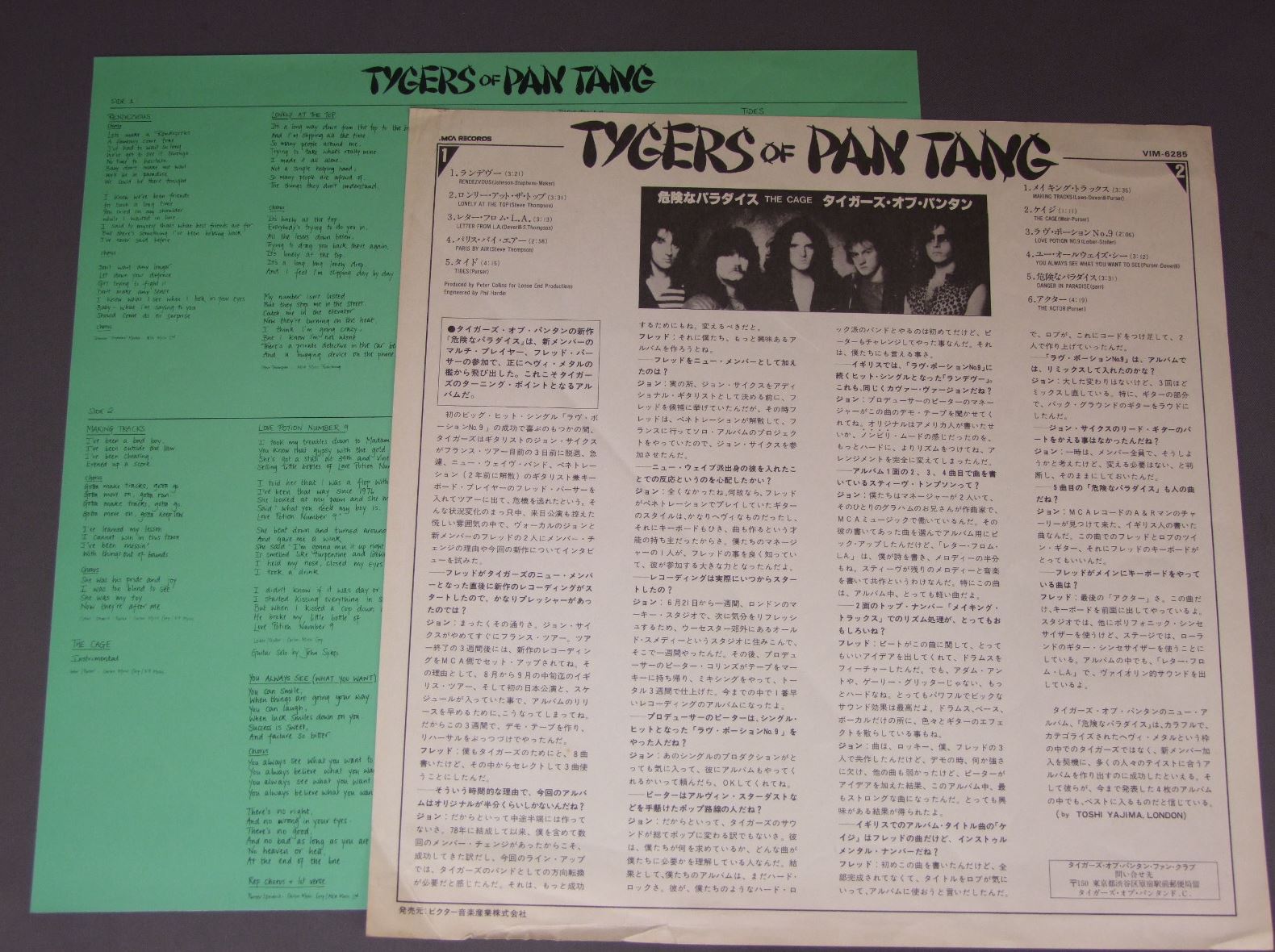 TYGERS OF PAN TANGタイガース・オブ・パンタン/CAGE危険なパラダイス VIM6285 製造国:日本盤 / Media:LP外観:EX+盤の状態:EX+帯:EX 価格(税込):¥1,650(売約済) 送料 7inch:定形外郵便 360円~LP:定形外郵便 660円~送料は、注文の最終画面で確認頂けます。 > > TYGERS OF PAN TANG/CAGE 外観 (EX+)特記事項:ジャケ表面にシミ、よごれ有。付属品にやぶれ有、ヨレ有、シミ、よごれ有。外観EX+の共通説明:中古としては美品、一見してきれいでダメージが軽微。シミ、ヨゴレ、スレ有っても僅か~少し。 盤の状態 (EX+)特記事項:極薄いスリキズ・スレ少し。一見してきれいな状態です。盤EX+の共通説明:盤面の極薄いスリキズ、スレ少し程度 音に出そうなものは無いように見える(極軽微なソフトティック音は除く)。 帯の状態 (EX):シミ有。 Tweet それぞれの画像をクリックすると、大きい写真が見られます こちらの商品もお勧めです 1,210円 NIGHT RANGERナイト・レンジャー / MIDNIGHT MADNESSナイト・レンジャー 660円 BERLIN / COUNT THREE & PRAY 660円 NIGHT RANGER / DAWN PATROL緊急指令 1,320円 RUSSIA露西亜 / RUSSIA露西亜 `ペテルスブルグ炎上` 770円 IAN GILLAN BANDイアン・ギラン・バンド / LIVE AT THE BUDOKANライブ・イン・ジャパン 770円 TED NUGENTテッド・ニュージェント / DOUBLE LIVE GONZO絶叫のライブ・ゴンゾー 1,210円 TYGERS OF PAN TANGタイガース・オブ・パンタン / CAGE危険なパラダイス 2,200円 HARDCHOIRハードクワイア / HARDCHOIR WLP華麗なる戦慄