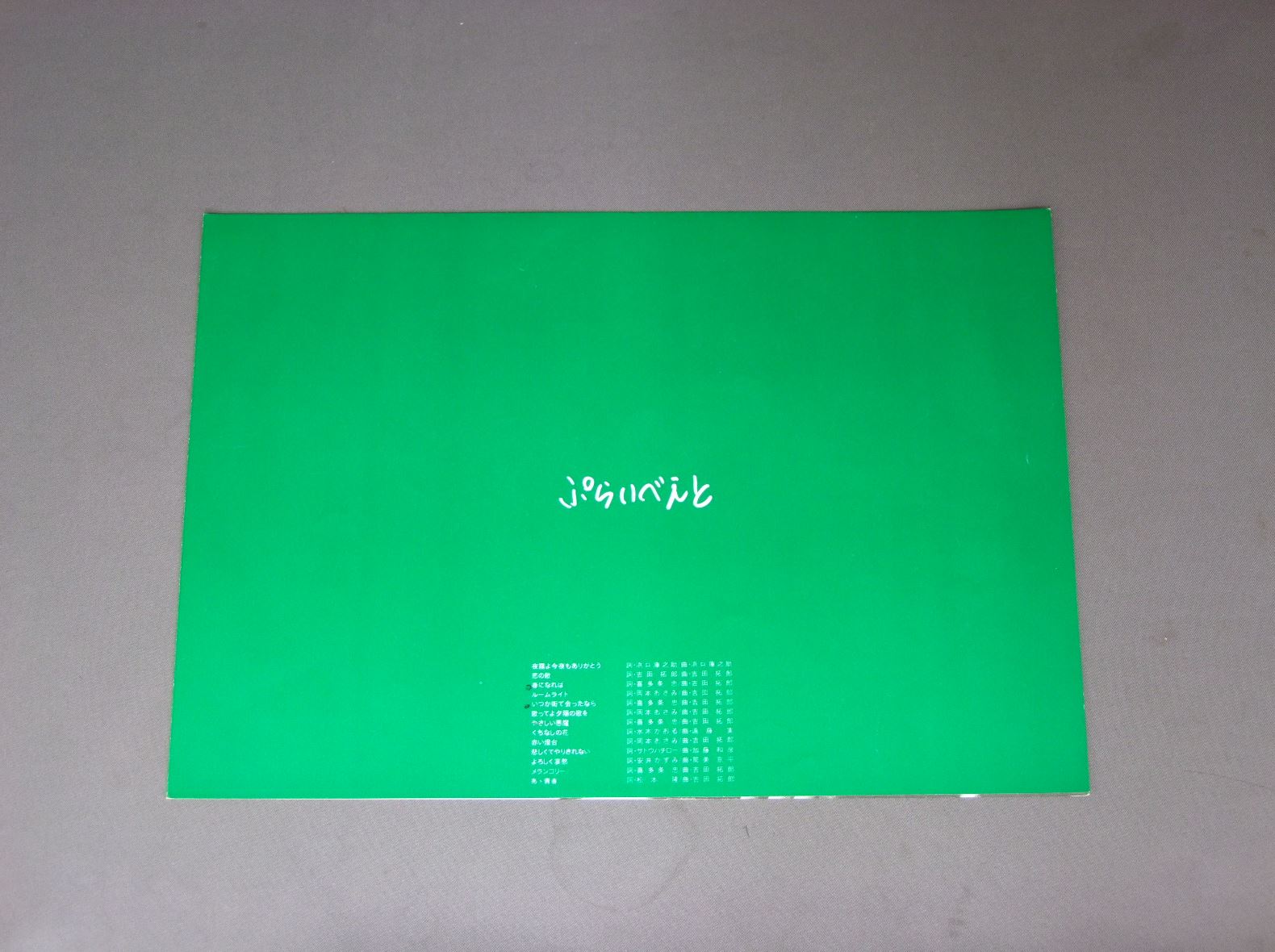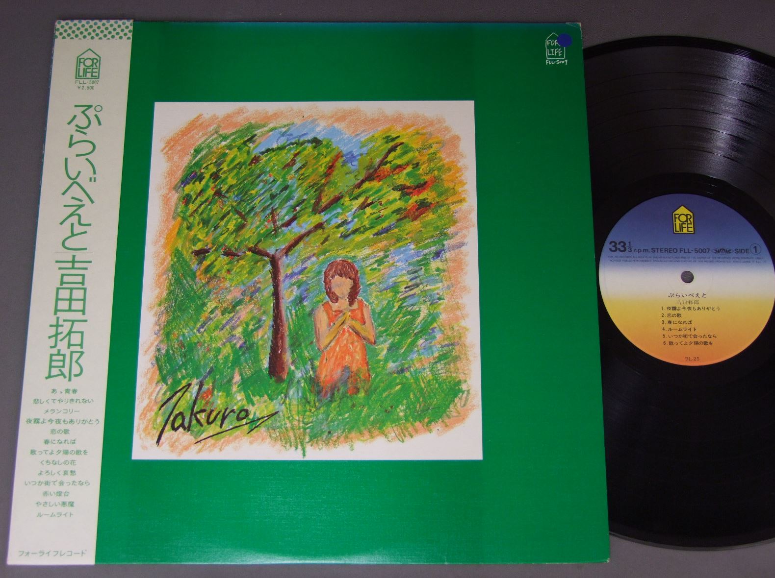 TAKURO YOSHIDA吉田拓郎/ぷらいべえと FLL5007 製造国:日本盤 / Media:LP外観:VG+盤の状態:EX帯:EX 価格(税込):¥550(売約済) 送料 7inch:定形外郵便 360円~LP:定形外郵便 660円~送料は、注文の最終画面で確認頂けます。 New Items > New Arrival Items of This Week > TAKURO YOSHIDA/ 外観 (VG+)特記事項:背にヨレ有、背や上ヘリにスレ有。表ジャケレコード取り出し口付近に日焼け。写真に有るもので全てです。外観VG+の共通説明:ダメージやや有り。シミ、ヨゴレ、スレなど多少~やや多め。 盤の状態 (EX)特記事項:薄いスリキズ・スレ少しある感じ。一見してきれいな感じです。盤EXの共通説明:盤面のスリキズが薄いものが少し~軽度 音に出そうなものは無いように見える(軽微なソフトティック音は除く)。 帯の状態 (EX):特記なし。 Tweet それぞれの画像をクリックすると、大きい写真が見られます こちらの商品もお勧めです 990円 TOI ET MOIトワ・エ・モワ / SORAYO空よ 3,080円 UTANOICHI唄の市 / 2nd ALBUMセカンド 1,650円 5 BALLOONS五つの赤い風船 / `75 880円 IRUKAイルカ / SHURIKUSUイルカのうた-イルカ・シュリークス時代 1,980円 FOLK CRUSADERSフォークル・クルセダーズ / FOLK CRUSADERS FAREWELL CONCERTフォークルさよならコンサート 770円 JIRO SUGITA杉田二郎 / 前夜 770円 OSAMU KITAYAMA北山修 / OSAMU KITAYAMA ALBUM戦争を知らない子供たち 北山修作詩集 1,650円 ITSUTSUNO AKAI FUSEN五つの赤い風船 / FOLK ALBUM NO1フォーク・アルバム第1集