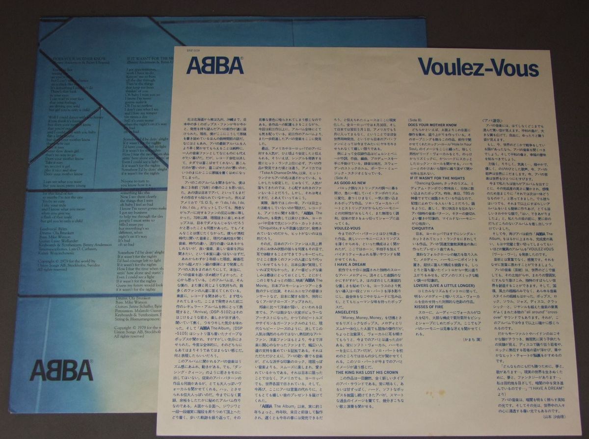 ABBA/VOULEZ-VOUS DSP5110 製造国:日本盤 / Media:LP外観:EX盤の状態:EX 価格(税込):¥330(売約済) 送料 7inch:定形外郵便 360円~LP:定形外郵便 660円~送料は、注文の最終画面で確認頂けます。 > > ABBA/VOULEZ-VOUS 外観 (EX)特記事項:特記なし。外観EXの共通説明:ダメージが限定的。中古品としては保存状態がよい方。シミ、ヨゴレ、スレ 少し~軽度。 盤の状態 (EX)特記事項:薄いスリキズ・スレ軽くある感じ。軽微なものの様子です。盤EXの共通説明:盤面のスリキズが薄いものが少し~軽度 音に出そうなものは無いように見える(軽微なソフトティック音は除く)。 Tweet それぞれの画像をクリックすると、大きい写真が見られます こちらの商品もお勧めです 990円 BAD COMPANYバッド・カンパニー / RUN WITH THE PACKバッド・カンパニー ?-ラン・ウィズ・ザ・パック 1,210円 ABBAアバ / ARRIVALアライバル 770円 ABBAアバ / GREATEST HITS VOL.2グレイテスト・ヒッツVOL.2 1,210円 BEE GEESビー・ジーズ / SOUNDTRACK STAYING ALIVE映画 ステイン・アライヴ 1,320円 WHAMワム / MAKE IT BIGメイク・イット・ビッグ 770円 MARC BOLANマーク・ボラン / YOU SCARE ME TO DEATH霊魂の叫び 1,210円 SKYスカイ / SKY 2スカイ2 770円 ABBAアバ / ARRIVALアライバル