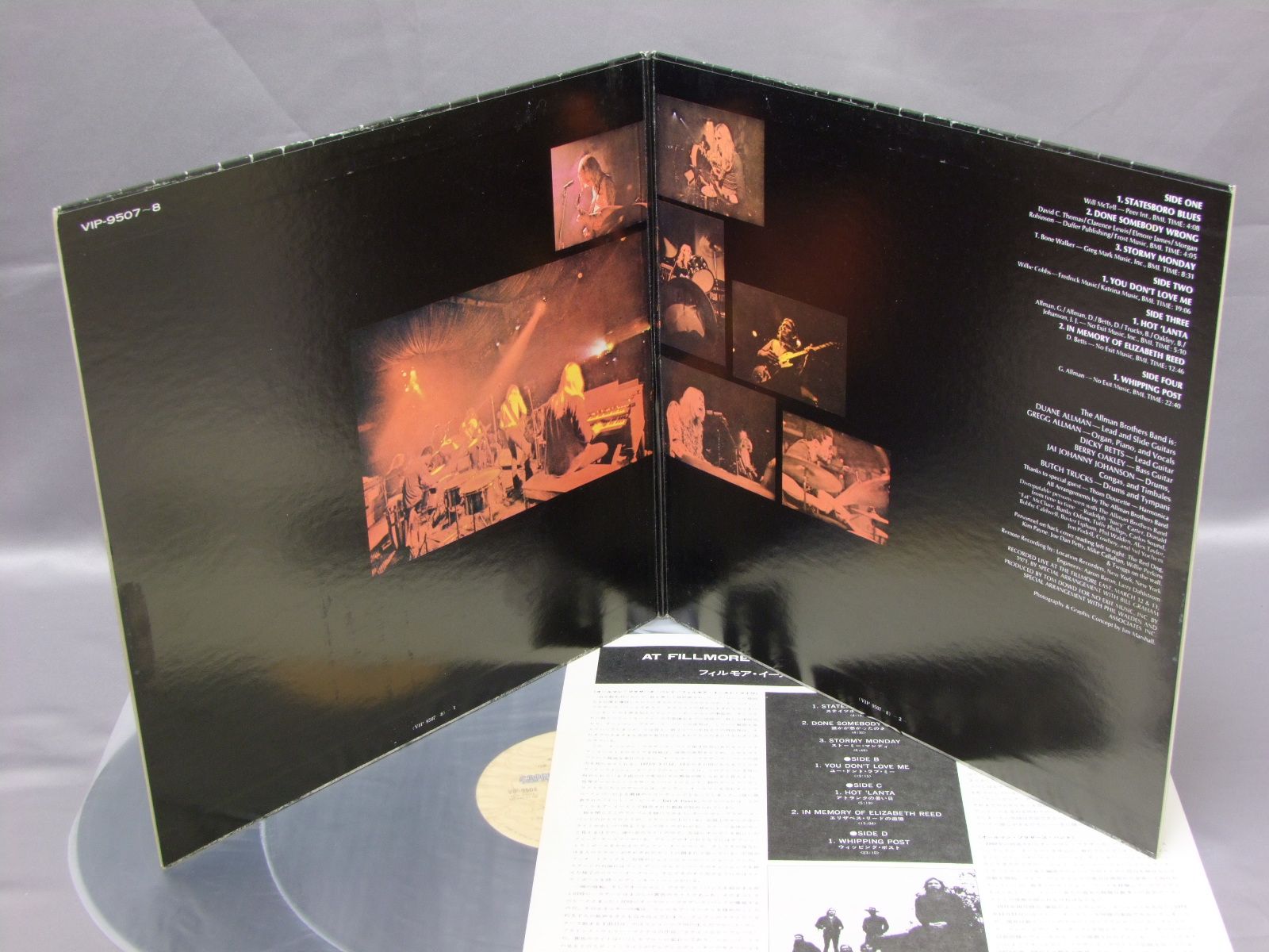 ALLMAN BROTHERS BANDオールマン・ブラザーズ・バンド/AT FILLMORE EASTフィルモア・イースト・ライブ VIP9507-8 製造国:日本盤 / Media:LP外観:EX盤の状態:EX+ 価格(税込):¥3,775(売約済) 送料 7inch:定形外郵便 360円~LP:定形外郵便 660円~送料は、注文の最終画面で確認頂けます。 > > ALLMAN BROTHERS BAND/AT FILLMORE EAST 外観 (EX)特記事項:見開きによごれ少し。外観EXの共通説明:ダメージが限定的。中古品としては保存状態がよい方。シミ、ヨゴレ、スレ 少し~軽度。 盤の状態 (EX+)特記事項:極薄いスリキズ・スレ少し。一見してきれいな状態です。盤EX+の共通説明:盤面の極薄いスリキズ、スレ少し程度 音に出そうなものは無いように見える(極軽微なソフトティック音は除く)。 Tweet それぞれの画像をクリックすると、大きい写真が見られます こちらの商品もお勧めです 1,980円 CARSカーズ / SHAKE IT UPシェイク・イット・アップ 770円 5TH DIMENSIONフィフス・ディメンション / THE BESTベスト 1,210円 SANTANAサンタナ / ZEBOP!ジーバップ! 1,210円 EAGLESイーグルス / LONG RUNザ・ロング・ラン 660円 SNEAKERスニーカー / SNEAKER想い出のスニーカー 1,980円 RIC OCASEKリック・オケイセク / BEATITUDEビアティチュード 1,320円 CATE BROTHERS BANDケイト・ブラザーズ・バンド / RENDEZVOUSランデヴー 880円 TOTOトト / HYDRAハイドㇻ