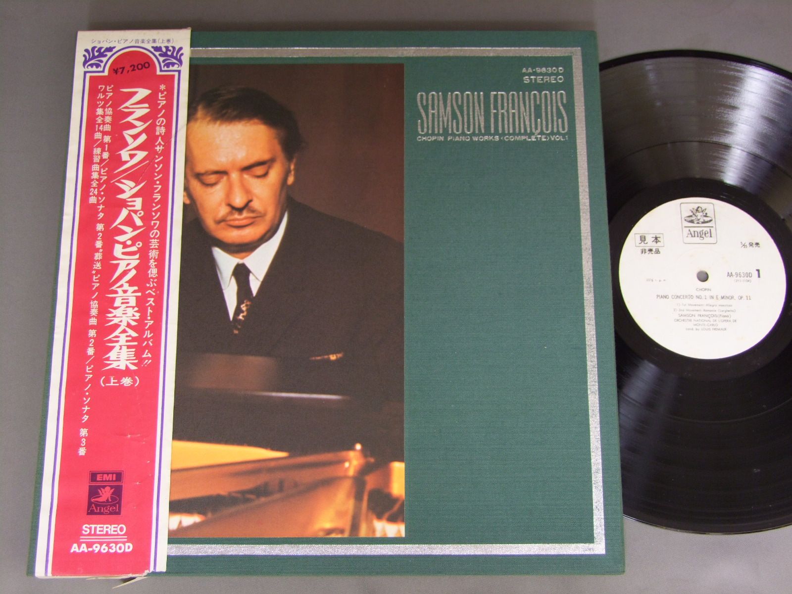 FRANCOISフランソワ/CHOPIN PIANO WORKS VOL1ショパン・ピアノ音楽全集(上巻) AA9630D 製造国:日本盤 / Media:LP外観:EX盤の状態:EX 価格(税込):¥2,420(売約済) 送料 7inch:定形外郵便 360円~LP:定形外郵便 660円~送料は、注文の最終画面で確認頂けます。 > > FRANCOIS/CHOPIN PIANO WORKS VOL1 外観 (EX)特記事項:特記なし。外観EXの共通説明:ダメージが限定的。中古品としては保存状態がよい方。シミ、ヨゴレ、スレ 少し~軽度。 盤の状態 (EX)特記事項:薄いスリキズ・スレ少しある感じ。一見してきれいな感じです。盤EXの共通説明:盤面のスリキズが薄いものが少し~軽度 音に出そうなものは無いように見える(軽微なソフトティック音は除く)。 帯の状態 ():切れ、やぶれ有。ヨレ有。シミ有。 Tweet それぞれの画像をクリックすると、大きい写真が見られます こちらの商品もお勧めです 770円 GULDAグルダ / DEBUSSY 24PRELUDES-BAND2ドビュッシー 前奏曲集-第2巻 770円 Hiroko Nakamura中村紘子 / FAVORITE PIANO WORKS幻想即興曲 990円 WALCHAヘルムート・ヴァルヒャ / BACH - PRAELUDIEN UND FUGENバッハ - プレリュードとフーガ 990円 RUBINSSTEINルービンシュタイン / CHOPIN POLONAZESショパン - ボロネーズ集 990円 RICHTERスビャトスラフ・リヒテル / ART OF RICHTER VOL10リヒテルの芸術`第10巻` 990円 FRANCOISフランソワ / PLAYS DEBUSSYドビュッシー名演集 990円 WILHELM KEMPFFウィルヘルム・ケンプ / FUER ELISE KEMPFF BEETHOVEN ENCOREエリーゼの為に ケンプ・ベートーヴェン・アンコール 990円 CARL WEINRICHカール・ワインリッヒ / BACH ORGAN MUSICバッハ・リサイタル